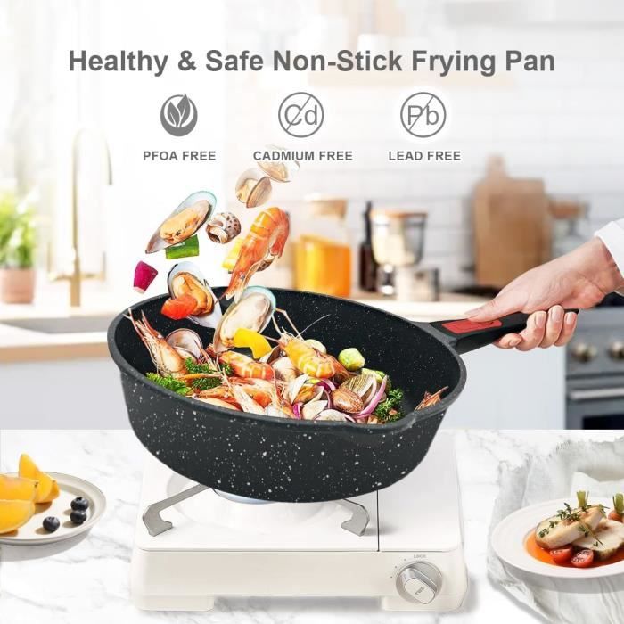 Instructions d'entretien et de maintenance Lavez cette casserole à l'eau chaude savonneuse et séchez-la complètement avec une serviette douce en coton ou en lin avant de l'utiliser pour la première fois. Poele a Frire Antiadhesive - La poêle à induction de 24 cm a un revêtement antiadhésif qui facilite les manipulations des aliments sur la surface et permet un nettoyage sans effort. Poele Ceramique Induction Poêle à Ire Antiadhésive En Aluminium De 20cm, P... - Grandado Poele De Buyer Poignée en Bakélite Résistante à la Chaleur - Les poignées rivetées de nos casseroles à induction sont ergonomiques et vous permettent de les déplacer facilement sur les tables de cuisson Culots d'induction Les fonds à induction des poêles à frire conviennent à tous les types de tables de cuisson, y compris les tables de cuisson électriques et en céramique. Pour protéger le revêtement antiadhésif, veuillez utiliser des ustensiles en plastique ou en bois. Les longues poignées donnent à ces poêles une prise confortable qui résiste à la chaleur et aux éraflures. Instructions D'entretien - Utilisez une spatule en bois ou en plastique pour le nettoyage, et un tampon ou une éponge en nylon doux imbibé de savon pour lave-vaisselle. Ils sont faciles à manipuler et sont livrés avec de longues poignées. Poele a Frire Antiadhesive - La po le induction de 24 cm a un rev tement antiadh sif qui facilite les manipulations des aliments sur la surface et permet un nettoyage sans effort, Instructions D'entretien - Utilisez une spatule en bois ou en plastique pour le nettoyage, et un tampon ou une ponge en nylon doux imbib de savon pour lave-vaisselle, Poign e en Bak lite R sistante la Chaleur - Les poign es rivet es de nos casseroles induction sont ergonomiques et vous permettent de les d placer facilement sur les tables de cuisson, Pour Toutes les Tables de Cuisson - Nos po les frire fonctionnent avec les tables de cuisson gaz, lectriques et en c ramique, pr servent et r chauffent uniform ment SENSARTE Poêle à frire antiadhésive avec couvercle 24cm, Induction Poele a frire antiadhesive universelle de 16 cm pour poele a en France... Un cadeau pour les gourmands L'ensemble de poêles à frire 3 pièces peut être le cadeau idéal pour vos proches, y compris vos amis et votre famille, en particulier ceux qui aiment la nourriture. Pour obtenir les meilleurs résultats, utilisez les poêles à des températures légèrement inférieures. Laissez toujours la casserole refroidir avant de la laver. Les poêles à frire sont idéales si vous disposez d'un des poêles modernes à couvercle en verre ou du traditionnel poêle à gaz de l'ancienne école. Poêle céraique gaz - Top 10 des eilleurs d'Avril 2022