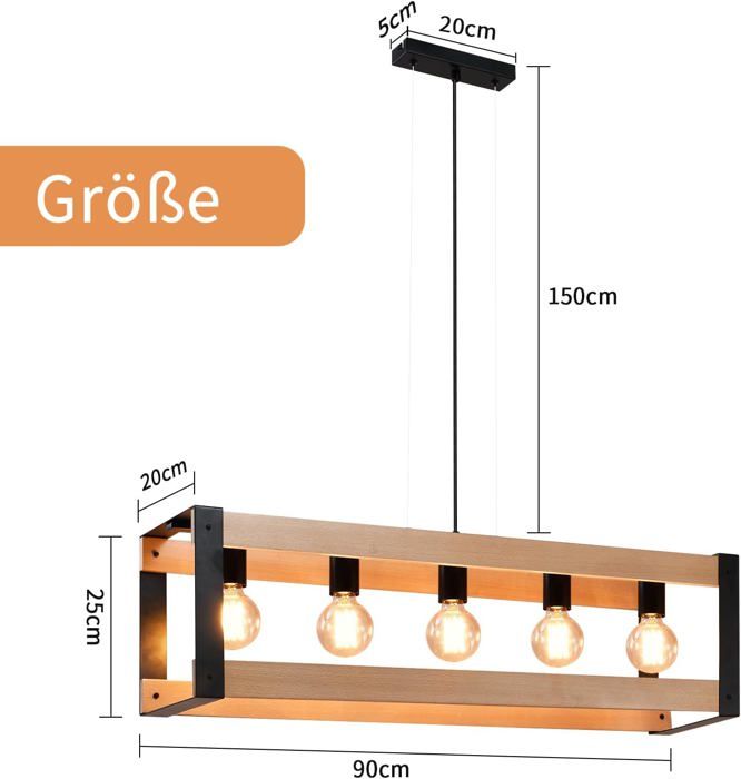 Autres options: Changement de couleur: Non | Télécommande: Non | Détecteur de mouvement: Non Les dimensions sont 55 x 15,5 x 142 cm. La lampe est livrée sans ampoule. Douille : E27. Réglable en hauteur : oui. DOUILLE STANDARD E27 : Cette lampe de salle... Suspension, Lampe En Bois, Suspension, Lampe De Salle à Manger Vintage Design Rtro 3 Flammes Grille En Mtal Bois Naturel Noir 3x Douilles E27 Lxlxh 76x18x120cm 55794396 Détails techniques lampe & ampoule: LED: non spécifié | Nombre de lumière(s): 5 | Culot: E27 | Ampoule(s) fournie(s): Non | Ampoule(s) remplaçable(s): Oui | Alimentation électrique: 230 Volt | Puissance par lumière: 25 | Intensité variable: Variateur externe (non inclus) | Sécurité: Indice de Protection: IP20 | Classe de protection: I Suspension Cuisine ZMH Suspension Lampe à Suspendre Table à Manger 4 Flammes Suspension Hofstein éclairage Brilliant Spot Weald 4-flammes noir/fumée/bois métal/verre/bois 4x A55... Type Type de luminaire: Suspension Dimensions Hauteur: 149 Diamètre: 23., 5 Matériaux et coloris Matériau du luminaire: Métal Matériau de l'abat-jour: Métal Couleur du luminaire: Noir Couleur de l'abat-jour: Noir Style et caractéristiques Type d'utilisation: Intérieur Pièce: Chambre à coucher, Salle à manger, Salon Style: Moderne, Vintage Interrupteur On/Off: Non Forme: Rond Détails techniques lampe & ampoule LED: non spécifié Nombre de lumière(s): 5 Culot: E27 Ampoule(s) fournie(s): Non Ampoule(s) remplaçable(s): Oui Alimentation électrique: 230 Volt Puissance par lumière: 25 Intensité variable: Variateur externe (non inclus) Sécurité Indice de Protection: IP20 Classe de protection: I Autres options Changement de couleur: Non Télécommande: Non Détecteur de mouvement: Non Smart Home Compatible Smarthome: Non spécifié Type de luminaire: Suspension | Dimensions: Hauteur: 149 | Diamètre: 23., 5