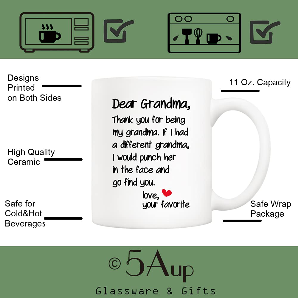 Parfait pour les boissons chaudes et froides, comme le café, le thé, le lait, le jus, l'eau, les boissons sportives, les smoothies et milkshakes, le chocolat, le cacao, la bière, le vin, les cocktails de fête, et à peu près tout ce qui vient à l'esprit. Mug Pour La Fête Des Mères « Great Grandma » De Granddaughter 5Aup Tasse à café humoristique pour grand-mère et peut être utilisée à la maison et au restaurant, passe au lave-vaisselle et au micro-ondes. Voici l'heure du café. Offrez une tasse fete des grand mere à votre mamie. Une idée cadeau originale, utile et personnalisée à seulement 10€. Livraison rapide Fonctionne également comme une trousse à crayons C'est un cadeau idéal pour les hommes et les femmes. Affiche de jardin Fête des Mères - Best grandma ever - Grandma - 80x120... Peut contenir 325 ml de votre café, thé ou boisson préférée, taille parfaite pour commencer votre matin. Cadeau idéal pour vos parents, papa, maman, collègue masculin ou féminin, frère, sœur, mari, épouse, oncle, tante, demoiselle d'honneur, petit ami, petite amie, fils, fille, grand-mère, grand-père, petit-fils ou petite-fille. 5Aup Tasse à café pour grand-mère ou grand-père de Cadeau d'anniversaire et de Noël pour elle ou lui. 100% pure céramique blanche et votre satisfaction est garantie. Excellent cadeau pour les amateurs de café qui apprécieront pendant des années. Offrez-le à votre maman, papa, fille, sœur, petit ami, petite amie, mari, épouse, collègue de travail, fille, grand-père, grand-mère, petit-fils ou petite-fille, ou à votre meilleure amie pour un anniversaire, Noël, la Saint-Valentin, la fête des pères ou des mères ou un anniversaire. Toutes vos boissons préférées.