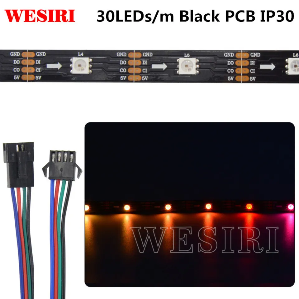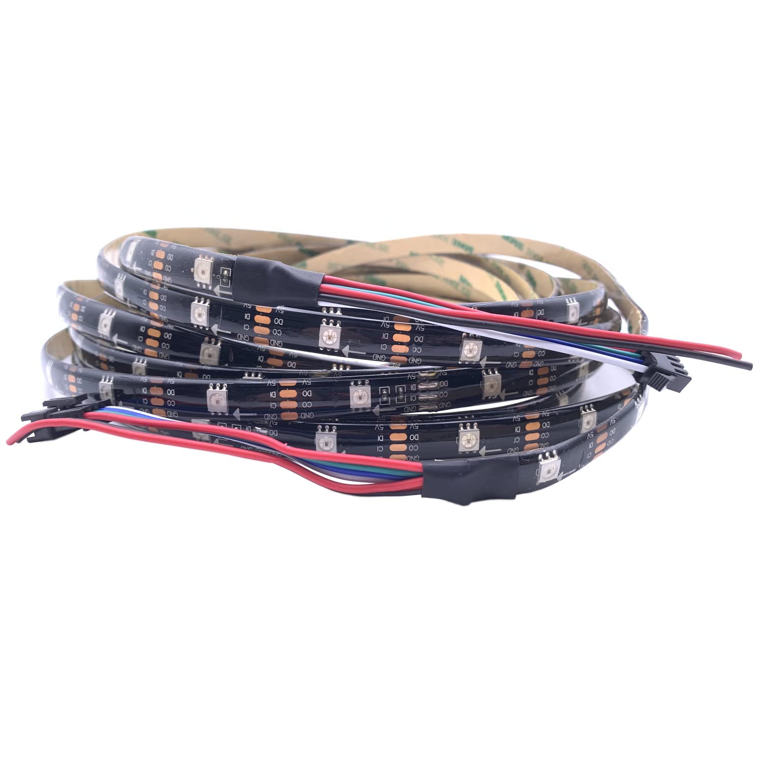 Plus stable et plus rapide. Contenu : 30 LED / 60 LED de 5 m, 144 LED de 1 m. Veuillez prêter attention dans un sac antistatique, avec un ruban adhésif 3M au dos (sauf le tube étanche en silicone 144 LED/m - 43,2 W/mètre., Échelle de gris : 256., Couleur FPCB : noir/blanc. Bande Lumineuse LED Intelligente APA102 5 M/lot ; DC5 V 30 Puissance : 30 LED/m - 9 W/mètre. Veuillez noter avant l'achat (vous pouvez choisir) : Couleur du PCB : PCB blanc/PCB noir. IP67 : étanche dans un tube en silicone. IP65 : étanche avec revêtement en silicone. Haute intensité et fiabilité, longue durée de vie. APA102C et SK9822 sont presque les mêmes. Veuillez prêter attention dans un sac antistatique, avec un ruban adhésif 3M au dos (sauf le tube étanche en silicone). Bande lumineuse LED, lumières LED 10 m, découpables télécommande de contrôle d'application Fonctionne parfaitement et est facile à programmer, car l'IC adressable est intégré au 5050SMD et il permet à cette bande LED d'éclairer chaque 5050SMD à votre guise. La LED utilise des puces LED à haute luminosité, et la date de rafraîchissement est de 400 cycles. APA102 – bande lumineuse intelligente à 30/60/144 diodes/pixels, SK9822, pour données de pixel et CLCK séparément, DC5V, IP30/IP65/IP67 · Avantages Il est plus stable qu'un seul signal. Contenu technique plus élevé. Les mêmes fonctions que APA102C. Par conséquent, la bande LED peut accepter une grande quantité de données du contrôleur, et peut changer en douceur la couleur sans scintillement, et peut également maintenir une haute luminosité