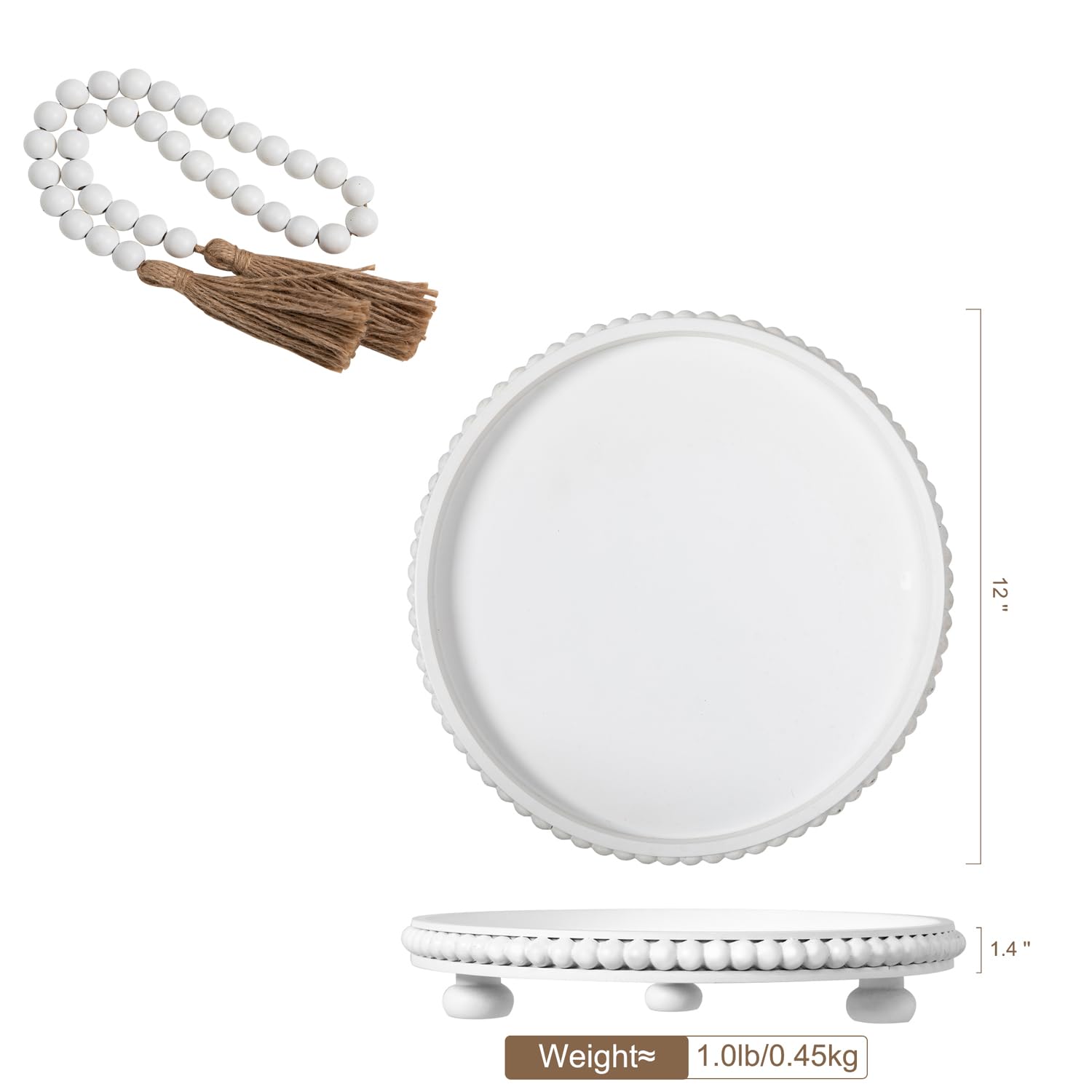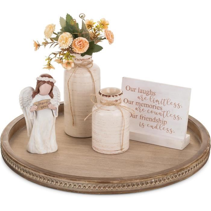 Artisanat en bois de qualité supérieure : améliorez votre décoration avec notre plateau décoratif, habilement fabriqué à partir de bois de haute qualité. Ce n'est pas seulement une décoration, c'est une déclaration de style et de chaleur, ce qui en fait le cadeau parfait pour les pendaisons de crémaillère et les occasions festives. Table basse bois massif dans le salon en 55 designs supers Marque. NICEPRING · Couleur. Blanc Délavé · Matériau. Bois · Dimensions du produit. 30,5L x 30,5l x 5,1H centimètres · Forme. Rond · Type de plateau. Plateau... Idéal pour les nouvelles maisons et les célébrations : célébrez des moments spéciaux avec ce plateau rond blanc. Plateau Décoratif Moderne Plateau Décoratif, Plateau Tournant, Bois : Rustique, Rond, Plateau En Bois Lazy... | Bol Plateau Rond Décoratif Son charme rustique ajoute de la chaleur à n'importe quel environnement, ce qui en fait une charmante pièce maîtresse pour votre salon, cuisine ou chambre. Les perles élégantes améliorent son attrait visuel, ce qui en fait un ajout exquis à votre décoration de table. C'est la taille idéale pour un centre de table basse ou un ajout de décoration de chambre d'amis, améliorant n'importe quelle pièce avec sa présence. Hanobe Plateau rond en perles en bois : plateau de table basse avec guirlande de perles en bois...