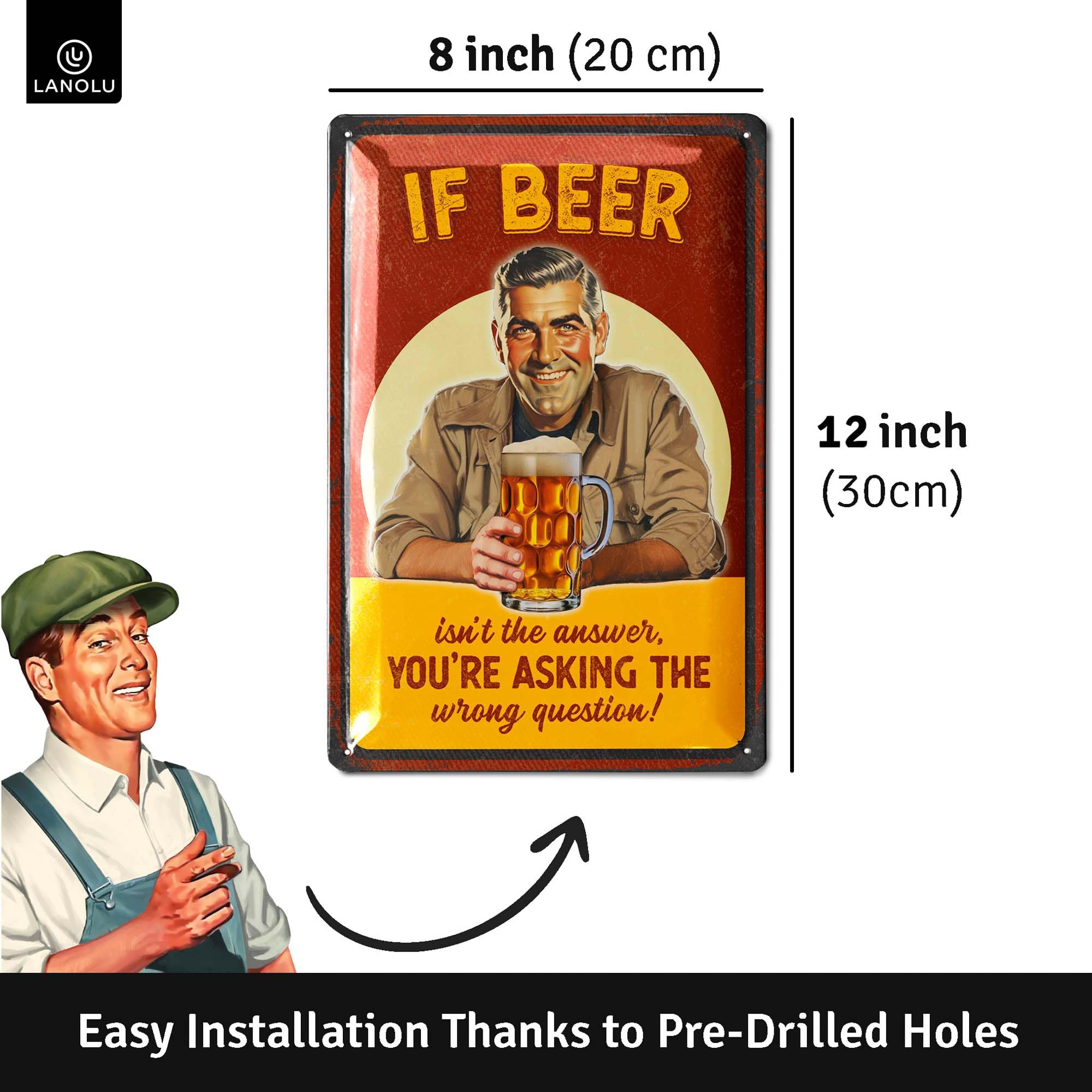 Dimensions : 8 x 30,5 cm, léger et ne se décolore pas Plaque humour | Boire avec Modération c'est bien, avec moi c'est mieux Présentation du produit Plaque murale en métal avec bière belge - 20,3 x 30,5 cm Imperméable, antireflet, nettoyage simple et inaltérable. Design créatif, compact et tendance. Design et couleur chic et rétro. Quatre petits trous pré-percés dans chaque coin de cette peinture, peut être fixée au mur avec des clous, du ruban adhésif double face ou du blu-tack. Convient pour les bars... Deco Bar Boîte Métallique Plaque En Métal Bonne Bière 20 X 30 Cm Plaque Murale Decorative Si vous avez des questions, veuillez nous contacter Plaque Métal Déco Vintage - EFFET RELIEF - Beer / Bière Fraiche... Lieu applicable : les cadeaux de bière pour homme peuvent décorer une grotte, un bar, un garage, une cave et un appartement. Contenu : 1 plaque en étain pour cave. Également une superbe plaque en tôle vintage à ajouter à votre collection ou à offrir à un ami Large choix de plaques métal décoratives sur l'univers des garagistes - Voitures et Motos Françaises, Américaines - Tracteurs - Huiles - Pneus - Porte-clés