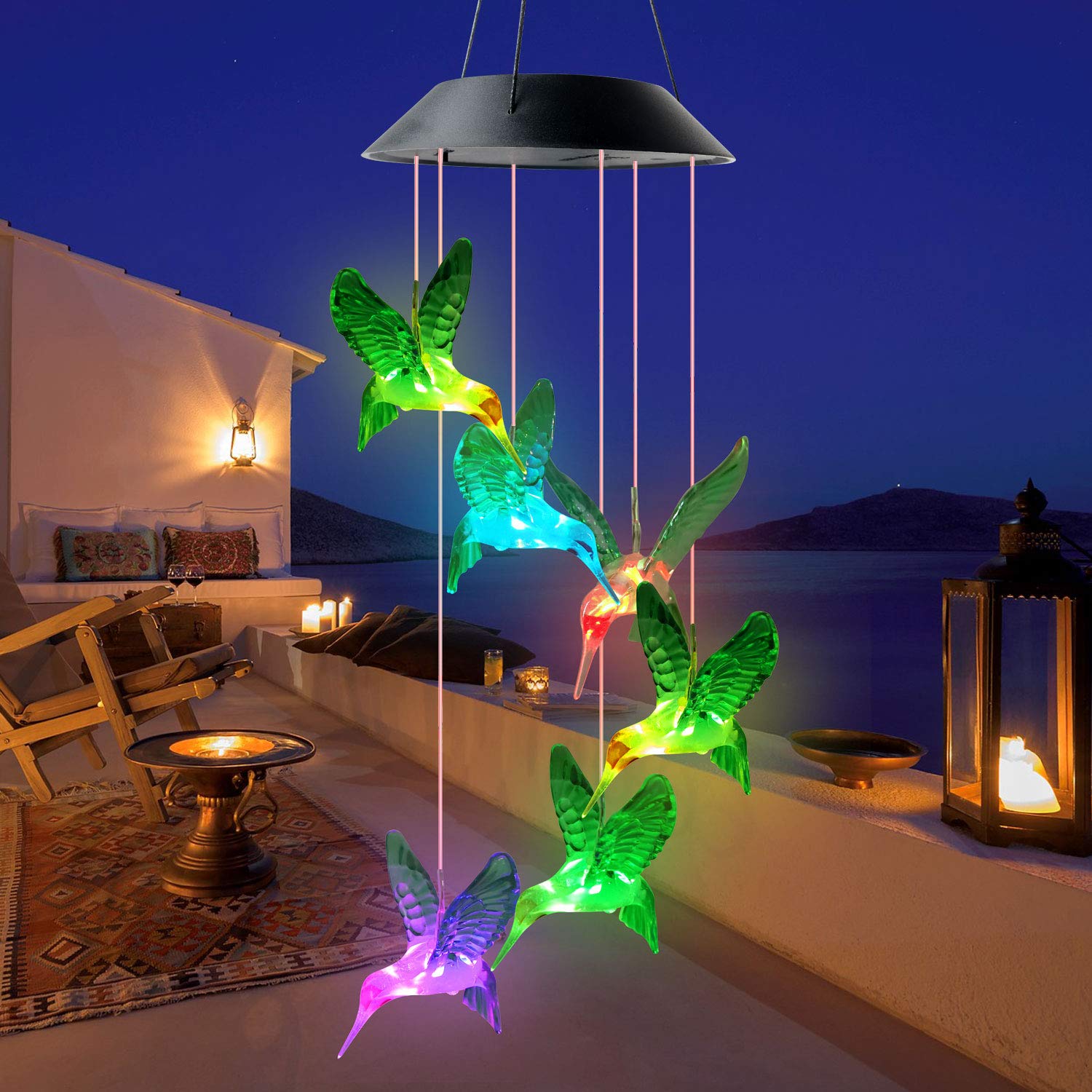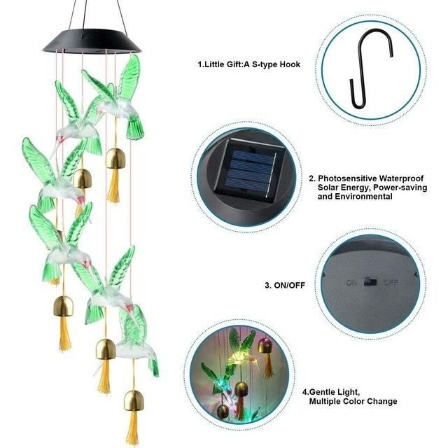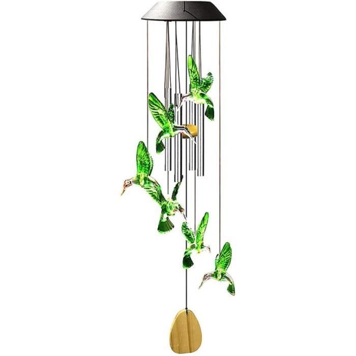 Ne se décolore pas et ne se déforme pas. Vcdsoy 1 carillon éolien solaire en forme de colibri pour l'extérieur – Cadeaux pour maman, femme, grand-mère, carillon éolien solaire à suspendre en forme de colibri, carillon éolien unique à suspendre pour extérieur, cour, jardin, terrasse, cour Carillons suspendus à économie d'énergie et respectueux de l'environnement avec étoiles lumineuses LED à couleur changeante à énergie solaire Ajoutez une touche d'élégance fantaisiste et inspirée de la nature à n'importe quel espace extérieur. Le temps de travail peut durer de 8 à 10 heures. Le carillon solaire est livré avec un capteur de lumière, qui s'allume automatiquement à la tombée de la nuit. Panneau solaire durable et puissant : le carillon éolien à énergie solaire utilise les derniers panneaux solaires, l'efficacité de fonctionnement est 1,5 fois plus élevée que les autres panneaux solaires. Carillon éolien solaire en forme de colibri à changement de Étanchéité IP65, le carillon solaire d'extérieur peut fonctionner pendant plusieurs heures même par temps pluvieux. Économie d'énergie : le carillon solaire est alimenté par l'énergie solaire et équipé de piles rechargeables, il suffit de les placer à un endroit avec la lumière directe du soleil pour une charge complète pendant la journée. Il n'y a aucun risque de dommages ou de fuite de matériaux dangereux. Décoration Extérieure Carillon Solaire LED Coloré Pour Extérieur - Lampe Suspendue En Forme Décoration Extérieure Jardin Carillon à vent facile à accrocher et à déplacer à l'extérieur : design unique résistant à la pluie et à l'humidité. De plus, ils ne se déforment pas, légers... Faible chaleur, durable et sûr. Durable et imperméable : le carillon éolien d'extérieur est fabriqué en verre, plastique et fer.