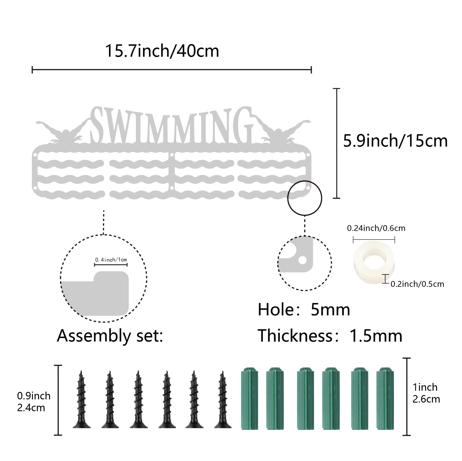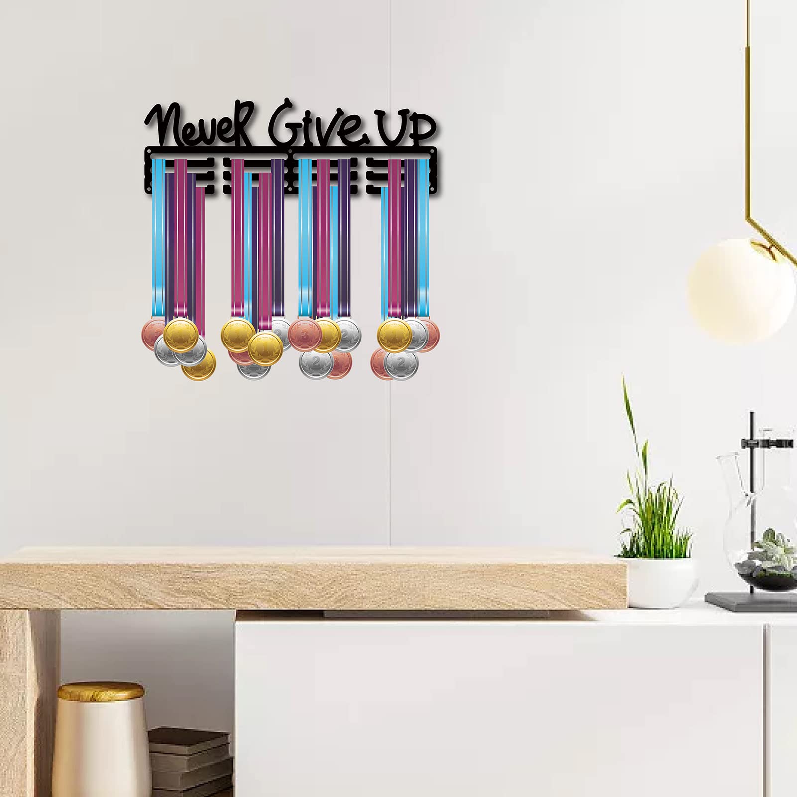 Super cadeau pour la Saint Valentin, Fête des pères, anniversaire, Jour de Thanksgiving, Noël et Halloween! CREATCABIN Never Give Up Porte-Médaille Présentoir Médailles Votre succès mérite d'être montré dans un endroit spécial. Crochets de médailles exquis pour décorer les bureaux, pièces, salons et n'importe quel endroit où vous voulez montrer ce moment joyeux. 60TENIR PLUS DE [ MÉDAILLES] : le porte-médaille est en fer de haute qualité, 3 rangées et 12 supports séparés, super capacité de chargement jusqu'à 5kg/11lb, accrocher plus de 60 médailles, butée antidérapante intelligente, surface ferme et lisse, pas d'arêtes vives. [NEVER GIVE UP MEDAL HOLDER (Titulaire des droits d'auteur, pas autorisé à utiliser sans autorisation) ④ Serrez la vis insérée dans le porte-médaille et les ancres vertes. Peut contenir plus de 60 médailles : le porte-médailles est fabriqué en fer de haute qualité, 3 rangées et 12 supports séparés, super capacité de charge jusqu'à... Nous avons conçu pour vous ce porte-médailles afin que vous puissiez arborer fièrement vos médailles, montre à tout le monde à quel point tu es bon, et rappelle toi à quel point tu es génial. Vous travaillez dur pour gagner ces médailles, ne les laissez pas être ignorés, vous avez besoin de beaux crochets de médaille, placez vos médailles bien en vue, laissez vos médailles être affichées, et montrez à tous votre excellence. CREATCABIN Never Give Up Porte Médaille Sport [NEVER GIVE UP MEDAL HOLDER] : Ne jamais abandonner. 60TENIR PLUS DE [ MÉDAILLES] : le porte-médaille est en fer de haute qualité, 3 rangées et 12 supports séparés, super capacité de chargement jusqu'à 5kg/11lb, accrocher plus de 60 médailles, butée antidérapante intelligente, surface ferme et lisse, pas d'arêtes vives. 1CINTRE ET ANCRES ET VIS POUR MÉDAILLES NOIRES] : [ pièce x porte-médaille noire, taille: 15., 7 x 5., 9 pouce (40 x 15 cm)., Épaisseur: 0., 15cm. afin de faciliter l'accrochage de la médaille) [CADEAUX IRREMPLAÇABLES] : Les médailles représentent la gloire et le dévouement.