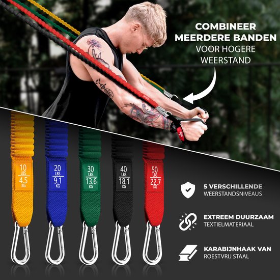 Les bandes d'entraînement peuvent être utilisées seules ou empilées dans n'importe quelle combinaison pour un maximum équivalent de 136 kg avec 6 niveaux de résistance différents (11,3 kg, 15,9 kg, 20,4 kg, 25 kg, 29,5 kg, 34 kg). C'est une excellente alternative aux équipements de musculation traditionnels encombrants ou aux équipements de fitness, comme les haltères, les kettlebells et les haltères. Utilisez les bandes de résistance individuellement ou combinez des bandes de résistance pour atteindre jusqu'à 136 kg de résistance. Parfaites pour le fitness... Les sangles de cheville ont un rembourrage en néoprène doux et un double anneau en D, ce qui en fait la cheville la plus confortable et la plus sûre sur le marché. Chaque bande de fitness tube est double couche et soigneusement construite pour fournir une résistance maximale. Que vous soyez un amateur de fitness expérimenté, un athlète professionnel ou un débutant. Bandes d'exercice de qualité supérieure : pour une longévité et une sécurité maximales lors de l'utilisation, les bandes de résistance de 119,4 cm de long sont fabriquées en latex naturel de haute qualité avec une sangle en nylon haute densité et des mousquetons d'escalade robustes en métal lourd qui ne se cassent pas et ne se déforment pas. Notre ensemble de bandes d'exercice est également livré avec un poster d'entraînement pour exercer différents groupes musculaires. C'est l'équipement d'entraînement parfait pour les hommes et les femmes ce qui le rend plus élastique et durable, sûr et fiable. Bandes de Résistance [GRDE] Set de 12 Pcs, 5 Tubes Latex Elastiques 4,6 à 22,8 kg, avec Poignées Bandes De Résistance Lourdes Pour L'entraînement, Bandes D'exercice De 136 Kg Avec Poignées, Bandes D'entraînement Pour Homme, Ensemble De Bandes De Fitness Pour Entraînement Musculaire, Force, Mince Gym privé portable : bandes élastiques d'entraînement avec poignées pour économiser de l'espace et faciles à transporter.