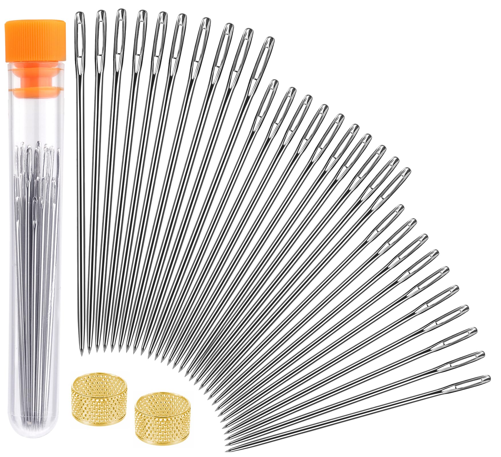 Largement utilisé : idéal pour les projets de couture et d'artisanat. Aiguille Avec Gros Chas Lot De 30 Aiguilles à Coudre épaisses à Gros Chas, 5 Tailles, En Acier Inoxydable Pour Broderie Et Couture A La Main~p126826584 Aiguille Gros Chas à Coudre 6 aiguilles à coudre à la main de 60 mm. Et le chas est assez grand pour être facilement enfilé même sans enfile-aiguille. HOTUT Lot de 30 Aiguilles à Coudre Gros Yeux, 6 tailles Les aiguilles à grand trou conviennent très bien pour la broderie, la couture à la main, les projets de cuir mince, le bouchon, etc. Plusieurs tailles d'aiguilles : le kit d'aiguilles à coudre à grand chas contient 30 aiguilles à broder, 5 tailles au total, à savoir 6 x 4,5 cm, 6 x 5 cm, 6 x 5,3 cm, 6 x 5,5 cm, 6 x 6 cm Caractéristiques: - Utiliser: couture à la main - Type: Kit de couture - Type de kit: YES - Type: no - Origine: CN (Origine) - Numéro de Modèle: lcf330-39... Veuillez noter que les aiguilles sont épaisses pour pouvoir travailler avec certains tissus. Nouveau design : les aiguilles peuvent être stockées dans la boîte en bois, vous n'avez pas à vous soucier de perdre vos aiguilles à coudre à la main. Boîte de rangement pour aiguilles : fabriquée en bois de santal et laiton. Différentes tailles d'aiguilles : 6 aiguilles de 46 mm., 6 aiguilles de 52 mm., 6 aiguilles de 53 mm., 6 aiguilles de 56 mm. Paquet : le paquet contient 30 aiguilles à coudre à grand chas, 1 étui à aiguilles en bois et 1 enfile-aiguille pour plus de commodité. AVERTISSEMENT : veuillez garder ce produit hors de portée des enfants et des animaux domestiques ! Aiguilles à gros chas : tout le monde peut facilement enfiler et utiliser ces aiguilles. Nos aiguilles à gros chas sont fabriquées en métal inoxydable, ont une surface lisse et un matériau de haute qualité, elles sont robustes et durables et peuvent facilement passer à travers le tissu.
