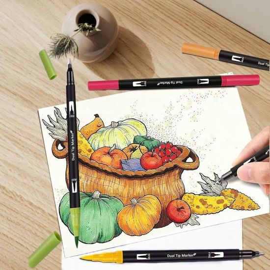 Marqueurs à double pointe : ces marqueurs polyvalents vous permettent de profiter de la flexibilité d'une pointe pinceau de 1 à 2 mm pour colorier, ombrer et estomper, ainsi qu'une pointe fine de 0,4 mm pour des détails précis. Faciles à manipuler : conçus dans un esprit de confort, ces marqueurs sont faciles à saisir pour tous les âges, ce qui les rend parfaits pour les enfants qui apprennent à dessiner et les adultes qui perfectionnent leur calligraphie. Excellente qualité : ces marqueurs fonctionnent bien sur tous les types de papier, offrant des résultats de haute qualité que vous travailliez sur un carnet de croquis, sur du papier aquarelle ou sur tout autre support. eilleurs Feutres pour andala 48 couleurs pour une créativité sans li – Notre set de feutre coloriage adulte comprend 48 teintes éclatantes. Parfait pour dessins, peinture, handlettering ou bricolages créatifs, ce kit polyvalent stimule l’imagination.Double pointe pour précision flexibilité – Chaque feutre pointe fine et pinceau souple permet à la fois détails et larges aplats. Idéal pour croquis, écriture... Feutres Alcool 48 Feutres Acryliques Coloriage Adulte Double Pointe (fine/pinceau) Avec Malette Pour Dessin, Manga, Calligraphie, Création - Beaux-Arts Et Loisirs Créatifs Feutre Acrylique Promo Feutres De Coloriage Double Pointe Design Journey chez Plein ciel