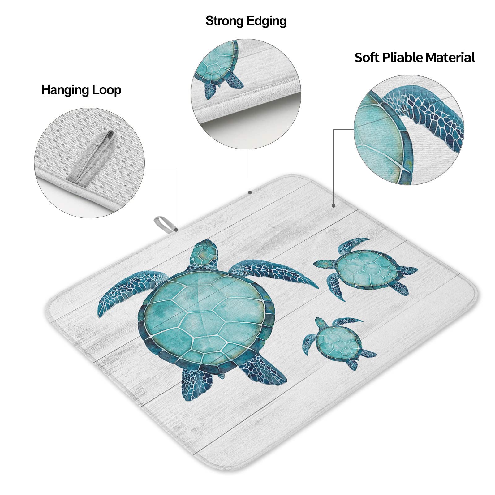 Instructions de lavage : Lavable en machine ou au lave-vaisselle. Excellent matériau en microfibre absorbant tous les restes d'humidité de vos casseroles, poêles et plats. ⑤ Pliable pour un rangement facile lorsqu'il n'est pas utilisé. Parfait pour les espaces restreints comme les campeurs et les chalets. Acheter Tapis De Sol De Cuisine à Motif De Tortue De Mer, 1 Pièce, Doux Et épais, Imperméable, Antidérapant, Résistant à L'huile Contenu de l'emballage : 1 tapis de séchage pour comptoir de cuisine. Motif : thème animaux marins. Pliable pour un rangement facile : ce tapis égouttoir absorbant sur le thème de l'océan avec boucle de suspension, il suffit de l'accrocher ou de le plier pour le rangement lorsque vous ne vous en servez pas. ★ Informations générales : Taille : 45,7 x 61 cm (grand). ★ Joli cadeau pour la maison. Gardez toujours votre cuisine propre et bien rangée, vous donnant un espace de cuisson plus confortable. 3pcs Tapis de bain et Contour WC Tapis de Sol Antidérapant Absorbant... ② Boucle de suspension pour accrocher le tapis pour sécher rapidement. Tapis Vaisselle En Microfibre Blue Ocean Tapis De Séchage En Microfibre Absorbant En Forme Tapis D'égouttoir Poignées rectangulaires noires à motif tortue de mer pour armoires de... ④ Protégez votre plan de travail des rayures et des éraflures. 【Protège la vaisselle et le comptoir】: les tapis de séchage d'été pour comptoir de cuisine s'adaptent parfaitement à la vaisselle, aux assiettes, aux tasses de la casse. ③ Protégez les bols, la verrerie et le plan de travail contre les rayures ou les dommages. Avantage : ① La microfibre et l'éponge composite absorbent l'eau de la vaisselle rapidement. Décoré avec des couleurs vives imprimées, qui surprendra votre famille et vos amis.