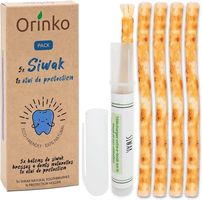 ♻️ ALTERNATIVE ÉCOLOGIQUE DURABLE : Remplacez les brosses à dents classiques par le siwak Orinko, idéal pour un mode de vie respectueux de l’environnement ⚡ PRATIQUE AU QUOTIDIEN : Faciles à utiliser à tout moment, nos bâtons de siwak sont parfaits pour le quotidien, en déplacement ou au bureau. ♻️ ALTERNATIVE ÉCOLOGIQUE DURABLE : Remplacez les brosses à dents classiques par le siwak Orinko, idéal pour un mode de vie respectueux de l’environnement. Comment bien conserver mon siwak ? Après usage, rincez-le à l’eau claire et laissez-le sécher à l’air libre. Siwak avec son étui de protection sous forme de stylo - Miswak Holder... <br/🪥 HYGIÈNE BUCCALE PARFAITE : Ce Miswak protège vos gencives, combat les bactéries et maintient une haleine fraîche grâce à ses propriétés naturelles. 🪥 HYGIÈNE BUCCALE PARFAITE : Ce Miswak protège vos gencives, combat les bactéries et maintient une haleine fraîche grâce à ses propriétés naturelles. Un bâton de siwak peut durer plusieurs semaines selon la fréquence d’utilisation.