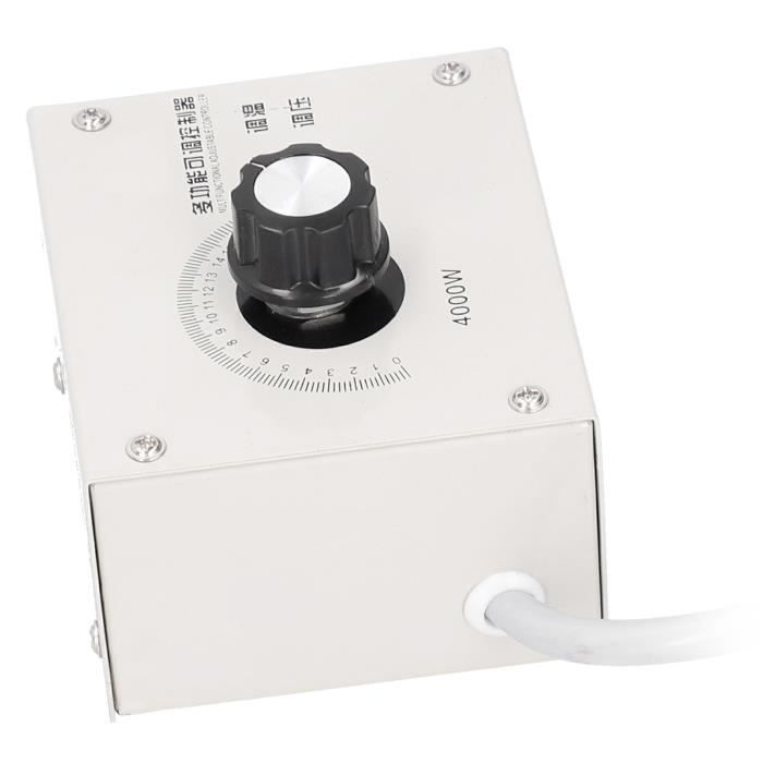 Variateur Pour Moteur 220V, Régulateur De Tension AC 4000W Variateur De Tension 220v Variateur De Vitesse Pour Moteur Regulateur De Vitesse Pour Moteur Electrique Variateur 87954692 Top qualité 4000W 220V AC SCR régulateur de tension variateur moteur... Régulateur 220v 4000w Variateur De Vitesse Pour Moteur 4000W, Régulateur De Tension SCR Haute Puissance ContrôLeur De Vitesse De Ventilateur De Moteur, ContrôLeur De Thermostat De Gradateur(220V EU Plug Regulateur Tension 220v Spécification: Tout neuf. Matériau: métal. Taille: comme indiqué sur l'image. Puissance maximale: 4000 W (charge résistive connectée). Régulation de la...