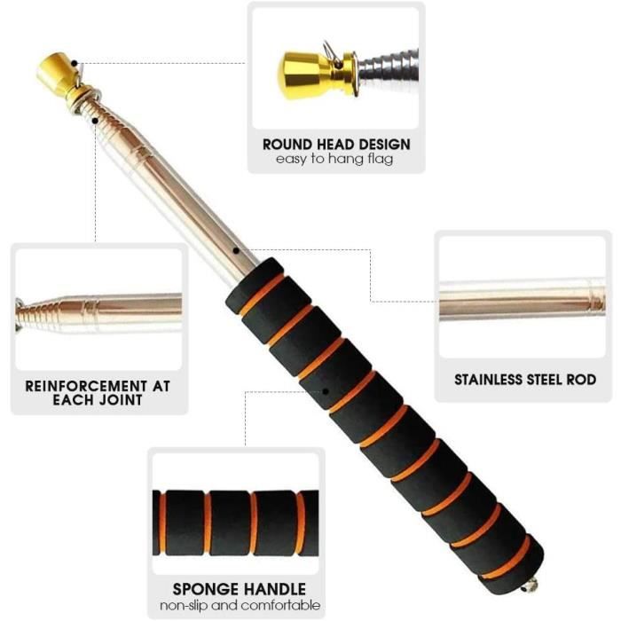 Contenu du paquet : 1 1 mât de drapeau télescopique. C'est un outil essentiel pour les guides touristiques, les enseignants et la participation à des activités. 3 PCS ât Télescopique Drapeau, at Pour Drapeau Portatif, at Drapeau Mat télescopique pour drapeau Vous souhaitez afficher fièrement votre drapeau décoratif dans votre jardin ou sur votre balcon ? Optez pour un mat télescopique spécialement conçu à cet effet. Pratique et facile à installer, ce mat ajustable en hauteur vous permettra de mettre en valeur votre drapeau et de le faire flotter au vent Facile à utiliser, il suffit d'étendre le mât de drapeau pliable à la longueur dont vous avez besoin et d'accrocher le drapeau dessus. Telescopique Perche Télescopique En Composite 2m - L'Outil Parfait Au Meilleur Prix - Roule Porte Drapeau Matériau : acier inoxydable 304., Taille : 1,6 m., Couleur : noir. Facile à utiliser : ils sont télescopiques pour un rangement et un transport faciles. Caractéristiques : Plus facile à saisir, antidérapant et durable, et le design du joint d'extension est sélectionné, qui peut être ajusté en fonction de vos besoins. Mât de Drapeau - Inoxydable - 1.2m - Portable - Télescopique...