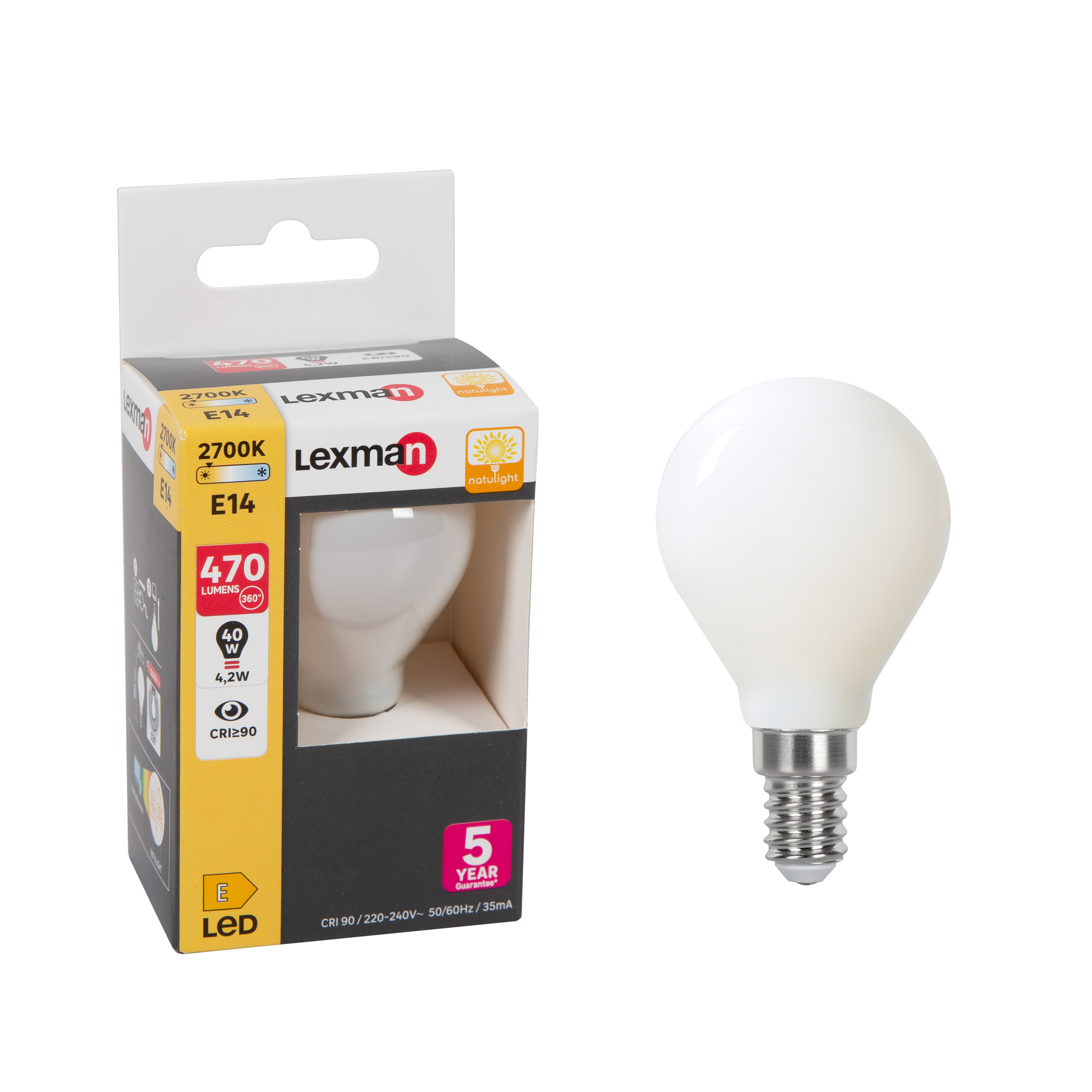 Boule Lot x2 ampoules 6 W (= 40 W à incandescence)., 470 lm 4200ºk. Produit présentant une consommation énergétique de 7W pour une équivalence incandescente de 60W. Dispose d'un culot standard E14, simple et pratique 15 000 et 30 000 heures de temps de combustion sur. Mini Ampoule LED Sphérique 6W E27Offer Durée de vie : jusqu'à 30 000 heures wonderlap Rled - Pack 2 Bobillas iniesfèrica Rosca fina E14, en... Ampoule sphérique halogène E27 28 w=40w - ÉCLAIRAGE/Ampoules sphériques Couleur : 4200ºk lumière neutre Lumière neutre, parfait pour l'éclairage dans les cuisines et les salles de bains.