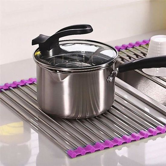 Sur une table ou un plan de travail, ce tapis déroulable peut également être utilisé comme dessous de plat pour protéger la surface de la chaleur. Il est assez grand pour y poser un plat à tarte ou une plaque de four. Dimension : 37 x 23 cm (12 tubes). Égouttoir à vaisselle en plastique pour évier Égouttoir de séchage pour plats Plateau de tri Pour gagner de la place dans votre petite cuisine, il suffit de dérouler cet égouttoir en acier et de le poser sur l'évier. Utilisable également en tant que dessous-de-plat pour casseroles et poêles. LIWI-Égouttoir à vaisselle antidérapant en acier inoxydable - Multi-usage - Pliable - Pour... Extrêmement antidérapant. Résiste à la chaleur jusqu'à 250 °C. Idéal pour faire sécher la vaisselle et égoutter les fruits et légumes. Tapis égouttoir enroulable pour vaisselle., Couleur Fuchsia. Étagère pour évier de cuisine, extensible, en inox, 40×12×9 cm, égouttoir, support pour... SHOP-STORY - Égouttoir Antidérapant En Acier Pour Evier Le revêtement en silicone en fait un ustensile hygiénique et antidérapant.