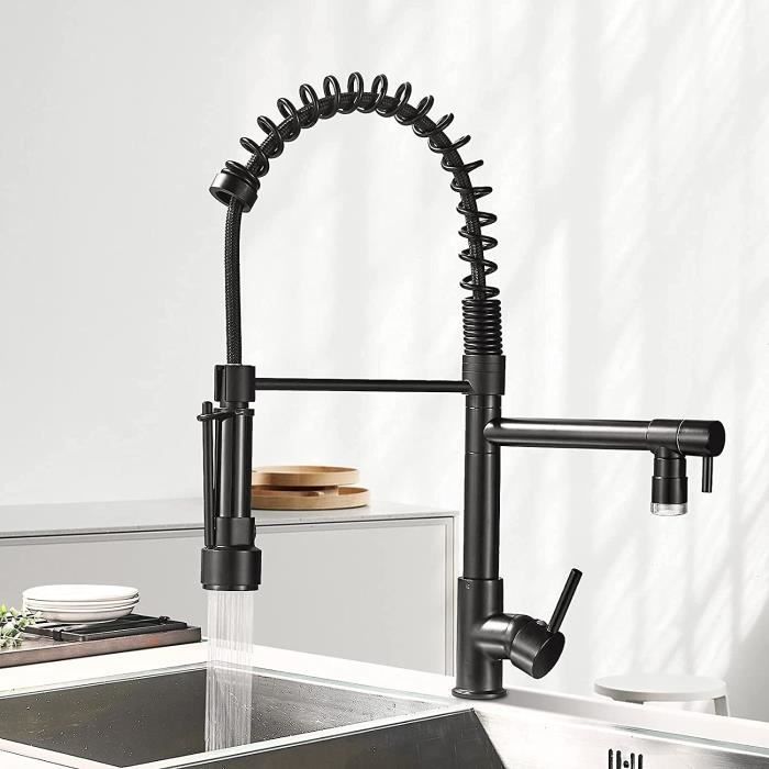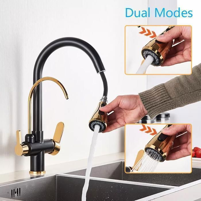 Design unique : ce robinet de cuisine galvanoplastie a une belle apparence élégante qui s'adapte parfaitement à tout type de décoration de cuisine. 1. Hauteur totale : 43,5 cm, hauteur découlement : 15 cm, longueur découlement : 20 cm, poids net : 1712 g, diamètre du trou : environ 35 mm, pivote à 360°2. En laiton massif de haute qualité à faible teneur en plomb, doré et noir, surface de vernis à haute température, résistant à loxydation et à la rouille.Avec douchette extractible, douchette extractible, deux types de jet (jet... Facile à installer : montage à un trou ; trou de montage : ø32-45 mm ; le paquet contient un connecteur universel G3/8 et les accessoires nécessaires à l'installation, il convient à toutes les interfaces de débit d'eau courantes, vous pouvez installer le robinet de cuisine en moins de 20 minutes. Robinet De Cuisine Extensible Inox Robinet De Cuisine Avec Douchette Extensible, Rotatif À 360 Robinet De Douche Extensible Inox Pour vous assurer que vous avez le robinet parfait, nous testons soigneusement nos produits avant la livraison. Robinet De Cuisine Avec Douchette Extensible, Pivotant À 360 °, Robinet... Robinet De Cuisine Extensible Doré Et Noir Avec Douchette Extractible Mitigeur Monocommande Pivotant A 360 En Laiton 97079002 Service après-vente : nous offrons une garantie à vie sur notre mitigeur de cuisine. L'aérateur empêche les éclaboussures et vous permet de travailler en cuisine en douceur.
