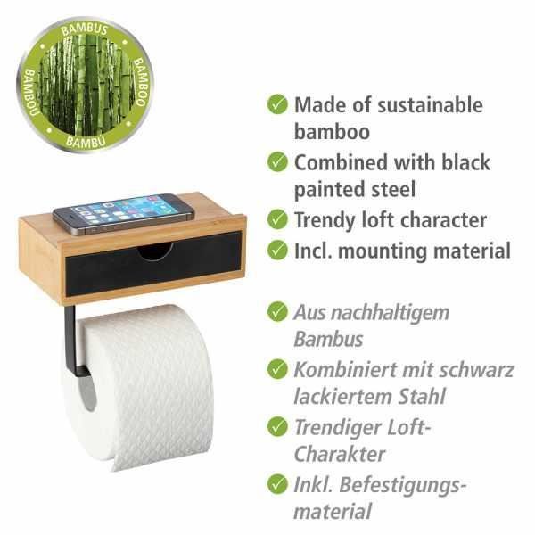 Installation facile : Les accessoires pour WC se fixent sur une surface propre et sèche, atteignant une adhérence maximale après 24 heures, sans laisser de résidus lors du retrait. Facilité de nettoyage : Le revêtement en poudre spécial et le couvercle en bambou empêchent les empreintes digitales et l'accumulation de poussière, facilitant le nettoyage et l'entretien. Utilisation et installation pratiques : Le porte-papier toilette sur pied est facile à installer sans outils complexes. Porte Papier Toilette Bambou Ecooe - Avec étagère, Support Matériaux de haute qualité : Le dévidoir pour papier toilette mural est fabriqué en acier inoxydable 304 avec un couvercle en bambou, garantissant qu'il ne rouille pas, est résistant à la corrosion et durable. Design moderne et fonctionnalité pratique : Le dérouleur de papier toilette avec étagères allie design moderne et fonctionnalité pratique, incluant un design avec étagère pour placer des petits objets comme un téléphone ou des lingettes. Porte-Papier Toilette Mural Avec Etagère Porte-Rouleau De Papier... Options d'installation variées : Le rangement pour papier toilette offre deux méthodes d'installation : en utilisant une colle forte sans perçage, ou en fixant avec les vis et chevilles fournies, ce qui permet d'adapter le distributeur de papier toilette à différents besoins d'installation et types de murs. Les bords de l'étagère sont poncés pour éviter les éraflures. Spécifications : Couleur : Noir, blanc, gris Matériau : Acier inoxydable, bambou Dimensions : 18x10,5x5 cm Poids : 0,55 kg Contenu de l'emballage : 1x porte-papier toilette en bois Derouleur Papier Toilette Murale Acier Inoxydable, Le design antidérapant empêche le rouleau de papier toilette de tomber, garantissant une utilisation en toute sécurité. Ce porte-papier toilette allie fonctionnalité et style. L'utilisation de bois de bambou donne au support un aspect naturel et la couche de cire offre une protection supplémentaire contre l'humidité. Les tampons auto-adhésifs 3M garantissent que vous pouvez fixer le support sur n'importe quelle surface lisse, idéal pour les propriétés locatives où le perçage n'est pas autorisé... Porte Papier Toilette Support Papier Toilette Mural Avec étagère Pour Etagere Murale Bambou Options d'installation flexibles : Le porte-rouleau WC offre deux méthodes d'installation : en utilisant une colle forte ou en fixant avec les vis et chevilles fournies, ce qui permet de s'adapter à différents besoins d'installation et types de murs.