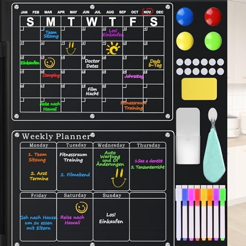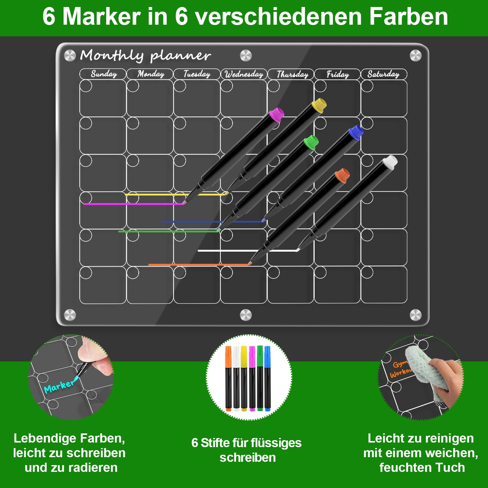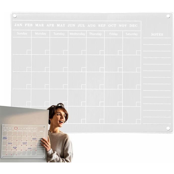 Notre calendrier frigo transparent est idéal pour planifier les menus de la semaine, les listes de choses à faire, les mémos importants et plus encore dans les maisons, les bureaux et plus encore. Ce tableau frigo magnétique transparent met en valeur l'apparence de votre réfrigérateur et s'adapte parfaitement à la couleur de ce dernier. Spécifications: Couleur : Transparent Matériau principal : Acrylique, magnétique Taille du tableau : 30x40cm Epaisseur : 0,3 mm 📦La gamme de livraison : 2 x Calendrier acrylique frigo 6 x Marqueurs de différentes couleurs 1 x Chiffon de nettoyage 1 x Porte-stylo magnétique 1 x Gomme pour tableau noir 1 x Crochet magnétique 4 x Aimants 12 x Nano autocollants Attention: 1., En raison des mesures manuelles, la taille et le poids peuvent présenter une certaine erreur., 2., Les couleurs peuvent varier légèrement en raison des différences entre les écrans., 3., Si l'écriture reste longtemps sur le tableau transparent frigo, il faut l'essuyer avec un chiffon trempé dans l'eau et attendre que le calendrier acrylique sèche avant d'écrire à nouveau. 【PUISSANTS AIMANTS】Notre planner frigo utilise 6 puissants aimants, et peut être fermement fixé au réfrigérateur ou à d'autres surfaces métalliques, et ne pas se déplacer ou tomber facilement. Planifiez votre vie avec facilité et ne manquez plus jamais un jour important. Le kit calendrier frigo contient 2 Calendrier magnetique frigo transparent, 6 Marqueurs de différentes couleurs, 1 Serviette, 1 Crochet magnétique, 4 Aimants, 1 Gomme à tableau, 1 Porte-stylo magnétique et 12 Nano-autocollants. Money Back Guarantee ensures that buyers receive the item they ordered or get their money back. ELUBLU Calendrier Magnetique Frigo Transparent Le calendrier frigo amélioré utilise 6 aimants puissants qui sont plus stables que les aimants ordinaires et qui tiendront fermement sur votre réfrigérateur ou sur d'autres surfaces métalliques, à moins que vous ne le déplaciez manuellement. 【CALENDRIER ACRYLIQUE FRIGO DE HAUTE QUALITÉ】Ce tableau acrylique magnetique frigo est fabriqué en acrylique transparent de haute qualité, résistant à la casse et à la déformation,et le tableau transparent effacable vous permet de voir vos plans d'un seul coup d'œil. Il peut être facilement nettoyé sans laisser de taches. BIROYAL Planning Frigo Magnetique 2 Set, Acrylique Tableau Magnetique 【PARFAIT POUR PLANIFIER VOTRE VIE QUOTIDIENNE】Nos tableau transparent frigo conviennent à différents styles de vie et besoins, tels que les familles ou les étudiants. Calendrier Magnetique Frigo Planning Avec Marqueurs Et Gomme... 【ERASABLE ET RÉUTILISABLE】l'écriture sur nos planning frigo magnetique est clairement visible, même si le tableau a été utilisé sur un réfrigérateur d'une autre couleur. Le tableau magnetique frigo transparent à sec pour réfrigérateur n'est pas facile à rayer ou à endommager pendant l'écriture, et le tableau acrylique magnetique frigo peut être réutilisé. 【CALENDRIER TRANSPARENT FRIGO】Notre tableau transparent frigo mesure 30x40cm et a une épaisseur de 0,3cm. Calendrier Magnetique Frigo Transparent 2 Pièces Calendrier Magnetique Frigo, 40 X 30 Cm Tableau Magnetique Transparent Frigo, Planning Tableau Menu Semaine Magnetique Les calendriers en acrylique réutilisables contribuent à réduire les déchets de papier et à protéger l'environnement.