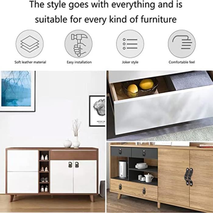 Contenu de l'emballage : 2 poignées d'armoire en cuir, vis fournies pour l'installation. Julyee Poignee Cuir, 10 Pièces Poignées Meuble En Cuir Pour Salle De Bain Cuisine Armoires De Portes - 14 X 2.5 Cm, Noir Il est adapté pour les cuisines, salles de bains, bureaux, armoires à vin, commodes, coffres, etc. Caractéristiques : 100 % neuf. Product Description Collectionner des annonces a des surprises DescriptionSublimez vos meubles avec ces élégantes poignées en cuir PU en forme de T, parfaites pour remplacer les poignées de vos meubles et apporter une touche rétro à vos commodes ou portes de placard. Le cuir PU garantit durabilité et un toucher luxueux, s'intégrant harmonieusement comme poignées de tiroir vintage ou... Il se marie bien avec des designs de cuisine modernes, mais se marie bien avec les armoires traditionnelles personnalisées. Remarque : Longueur de la vis : 2,5 cm. Matériau : Les poignées de tiroir sont fabriquées en cuir et en alliage de zinc. Elles sont respirantes, durables, résistantes à l'usure et à la traction... Distance du trou : 128 mm (pour l'installation), longueur : 168 mm, largeur : 25 mm. Fabriqué à la main en cuir + épingle, il offre un toucher chaud et confortable avec une durabilité solide et durable. SUNERLORY 10pcs Poignee Cuir Bouton Cuir Poignées de Placard, anti Facile à installer, les vis d'installation sont incluses. Distance du trou : 128 mm (pour l'installation), longueur : 168 mm, largeur : 28 mm. Distance du trou : 96 mm (pour l'installation), longueur : 136 mm, largeur : 28 mm. Les couleurs peuvent être légèrement différentes de celles de la photo. Fabriqué à la main en cuir - Matériaux durables de qualité supérieure offrant un toucher chaud et confortable - Solide, durable, doux, vintage et antirouille.