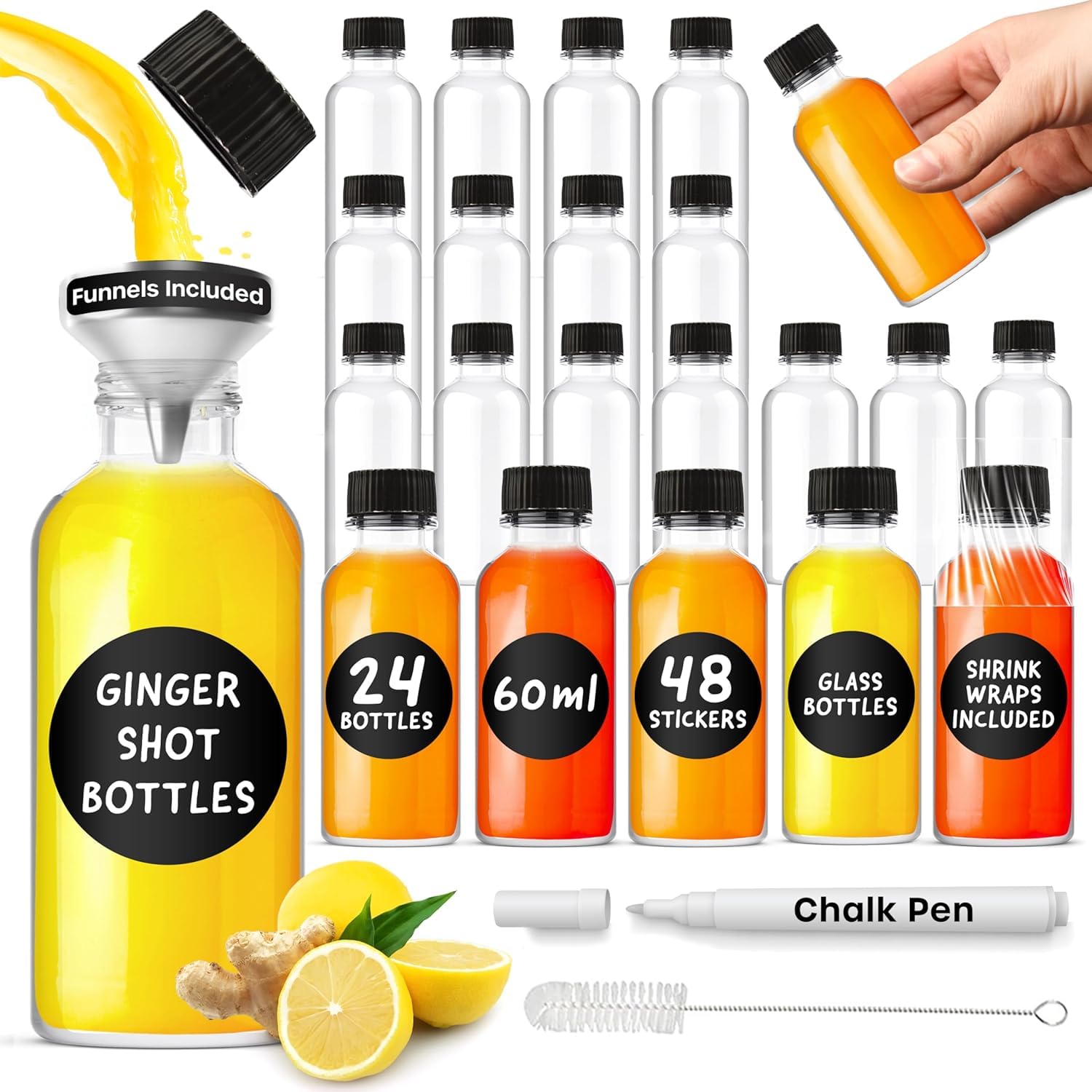 Avec des bouchons étanches, ces petites bouteilles à shot avec couvercles maintiennent la fraîcheur grâce à un joint hermétique, parfaites pour préserver les saveurs de gingembre, de citron, de Cayenne, de curcuma et de vanille. Rangez avec style avec des bouteilles polyvalentes de 60 ml avec bouchons Que vous aimiez bricoler des concoctions maison telles que des shots de gingembre, des mélanges de curcuma et plus encore, nos bouteilles à shot hermétiques et refermables de 59 ml avec couvercles améliorent à la fois le style et la commodité dans votre cuisine Nos bouteilles en verre de 60 ml avec couvercles comprennent une garantie de 1 an pour votre tranquillité d'esprit. Vase cylindrique en verre transparent 25x25x30 cm En plus d'être sécurisées et fonctionnelles, ces mini bouteilles ajoutent de l'élégance à votre rangement avec leur style Boston Round élégant et leur verre transparent immaculé. Nos bouteilles à shot recyclables et réutilisables avec bouchons sont également durables. Mini bouteilles de jus compactes et durables : nos bouteilles en verre portables de 59 ml avec couvercles sont pratiques pour les voyages et parfaites pour économiser de l'espace à la maison. Donnez à vos mélanges une touche élégante avec les petits verres à shot Nevlers avec couvercles. Scellez la fraîcheur avec les bouteilles de jus avec bouchons : gardez vos mélanges frais et sécurisés avec les bouteilles transparentes Nevlers de 59 ml avec bouchons. Ensemble de verres à shot en verre avec couvercles : le kit fournit des bouteilles transparentes et hermétiques de 59 ml avec bouchons ainsi que 48 étiquettes autocollantes et 55 pièces d'emballage rétractable pour sceller les bouchons. Mini Bouteille Bouteilles Rondes Vides En Verre Transparent De 500 Ml, Avec Bouchon En Petite Bouteille En Verre 50ml Lot de 55 films thermorétractables (3,8 x 2,5 cm) pour fermer les bouchons. 9 Pack Bouteilles En Verre avec Couvercles Noirs & Étiquettes - Petites Bocaux Clair pour Gingembre, Shot Bien-être, Jus, Échantillon, Whisky -. Numéro d... Image du transparence, vide, glace - 246843515 1 brosse de nettoyage de bouteille de 12,7 cm. Notre lot polyvalent pour verres à liqueur avec couvercles dispose d'un entonnoir pour un remplissage facile, d'une brosse à bouteille de 12,7 cm pour le nettoyage et d'un marqueur blanc pour étiqueter ou décorer. 48 étiquettes autocollantes (3,8 x 3,2 cm)., 1 marqueur blanc., 1 entonnoir. Contenu de l'emballage : 48 bouteilles en verre hermétiques de 59 ml avec couvercles. L'épaisseur de qualité supérieure de ces bouteilles en verre à shot bien-être offre une durabilité ainsi qu'un design pratique et facile à tenir.