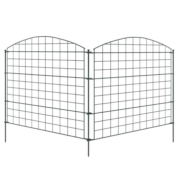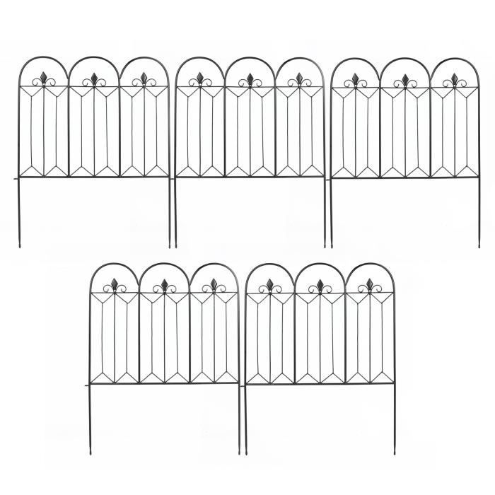 Utilisez cette clôture pour définir les bordures de jardin, créer une aire de jeu sûre ou garder vos animaux de compagnie contenus d'une manière élégante et pratique. Taille et matériau inoxydable]Clôture de jardin décorative en métal avec panneau unique de 61 cm de haut x 61 cm de large, lot de 10 au total de 6,1 m. Ces panneaux décoratifs en métal pour parterre de fleurs avant sont fabriqués en fer noir avec une surface revêtue antirouille vous permettra d'utiliser la clôture extérieure durablement; cette clôture de jardin a des motifs... Nous avons également conçu le haut des piquets métalliques comme une forme sphérique pour garantir la sécurité et éviter toute blessure potentielle. Clôture de barrière pour animaux Clôture Pour Chien Clôture De Barrière Pour Animaux – 61 Cm De Haut – Clôture Clôture Pour Chien De Berger Bordure Jardin Clôture Jardin Décorative Thealyn - 10 Panneaux 3.3 Clôture décorative polyvalente : notre clôture décorative sert à diverses fins. La clôture de jardin VEVOR assure la sécurité avec une hauteur de 24 pouces, une soudure triple couche et un acier au carbone résistant à la rouille, parfait pour les animaux domestiques, les enfants et améliorant l'esthétique du jardin. Facile à installer : l'installation de cette clôture est un jeu d'enfant. Lorsqu'ils sont connectés, un lot de 10 panneaux totalise 6 m de long. Matériau. Carbon Steel · Couleur. Noir · Marque. VEVOR · Style. 61cm(H)x3.3m(L) · Dimensions du produit. 46,5L x 35,5l centimètres · Assemblage requis. Oui Robuste et antirouille : notre clôture de jardin est construite avec un fil métallique épais soudé et traitée avec de la peinture de cuisson pour éviter la rouille. La clôture est extensible, si vous avez besoin d'étendre la clôture, elle peut également être facilement réalisée. Insérez simplement les piquets métalliques (inclus) dans les trous entre deux clôtures pour les connecter, puis insérez les piquets dans le sol. Il peut être utilisé comme clôture de jardin ou barrière pour animaux, parfait pour protéger les plantes, les arbres et les légumes des petits animaux. La finition élégante en métal noir ajoute une touche moderne, tandis que les piquets apportent un charme élégant.