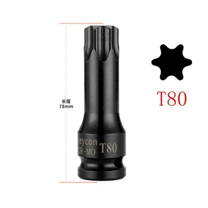 Adaptateur de douille méticuleusement fabriqué en acier au chrome molybdène traité thermiquement, offre une durabilité exceptionnelle. La finition phosphatée noire élégante améliore non seulement son attrait esthétique, mais offre également une résistance supérieure à la rouille, garantissant une performance durable Douille à impact Torx étoile à 6 points idéale Les douilles T80 fonctionnent avec des outils tels que des cliquets pour serrer rapidement et facilement les fixations de transmission. Le design biseauté et chanfreiné facilite une insertion facile et fluide et empêche efficacement l'usure des forets et des fixations. sourcing map Douille Torx T80 1,27 cm 6 points Douille Torx Grande Taille JEUCLEL Douille à Impact Torx étoile à 6 Points T80, Douille Douille Torx Male Le revêtement en phosphate noir améliore considérablement la résistance à la rouille et à la corrosion. 【Design de trou pour goupille】 La douille T80 est conçue avec une base séparée pour un trou de goupille, ce qui permet de placer une goupille de verrouillage pour plus de sécurité et maintenir la stabilité lors de l'application de mouvements de couple élevés. 【Design de biseau et de chanfrein】 Les douilles Torx sont usinées avec précision pour garantir des dimensions exactes. Acier Cr-Mo de haute qualité Le matériau en acier chrome-molybdène garantit une durabilité et une résistance excellentes, ainsi qu'une longue durée de vie. Design de trou pour goupille La douille T80 est conçue avec une base séparée pour un trou de goupille, ce qui permet de placer une goupille de verrouillage pour plus de sécurité et maintenir la stabilité lors de l'application de mouvements de couple élevés. Douille à impact Torx étoile à 6 points idéale] Les douilles T80 fonctionnent avec des outils tels que des cliquets pour serrer rapidement et facilement... Le design allongé le rend adapté à plus de scénarios de travail.