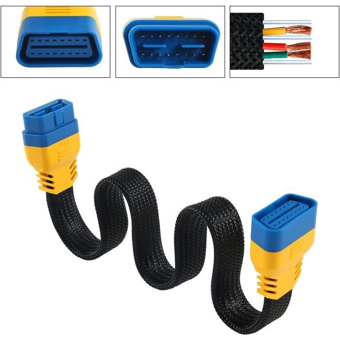 Description du produit Le câble de connexion présente une conception d'extension OBD2, composée d'une configuration de connecteur mâle à 16 broches vers femelle OBDII. Outils de diagnostic : câble de diagnostic à utiliser avec les appareils de diagnostic et les scanners OBD. Câble OBD2, 16Pin OBD2 à RS232 DB9 Adaptateur D'interface de Diagnostic de Voiture Câble D'extension Connecteur Cordon Remplacement pour Outil Automatique Câble de diagnostic d'extension rond avec connecteur mâle - 16 broche à prise ouverte à l'extrémité - OBD2 mâle - 16 connecteur à broche - (1FT/0.3m) (mâle Facile à utiliser : outils de diagnostic plus pratiques pour analyser et diagnostiquer les problèmes. Cable D'extension 16 Broches Extension Prise 16 Broches Câble Extension OBD2 Bbfly-B4 30cm - Splitter 16 Broches Pour Outil Diagnostic Voiture Connecteur Diagnostic Auto Cable D'extension Obd2 Fabriqué avec des matériaux de haute qualité, le câble garantit une flexibilité et une durabilité supérieures, promettant une fiabilité à long terme. Haute qualité : des matériaux de haute qualité confèrent au câble une flexibilité et une durabilité supérieures pour une utilisation à long terme. Contenu de l'emballage : 1 pièce de 16 broches mâle à femelle de 60 cm de long. COMPATIBILITÉ UNIVERSELLE] Cet adaptateur OBD2 mâle à femelle présente une conception universelle complète à 16 broches une compatibilité transparente avec tous les protocoles OBD2 standard.Il fonctionne parfaitement avec les outils de diagnostic, les scanners, les ECU et autres dispositifs à prise 16 broches.La construction robuste...