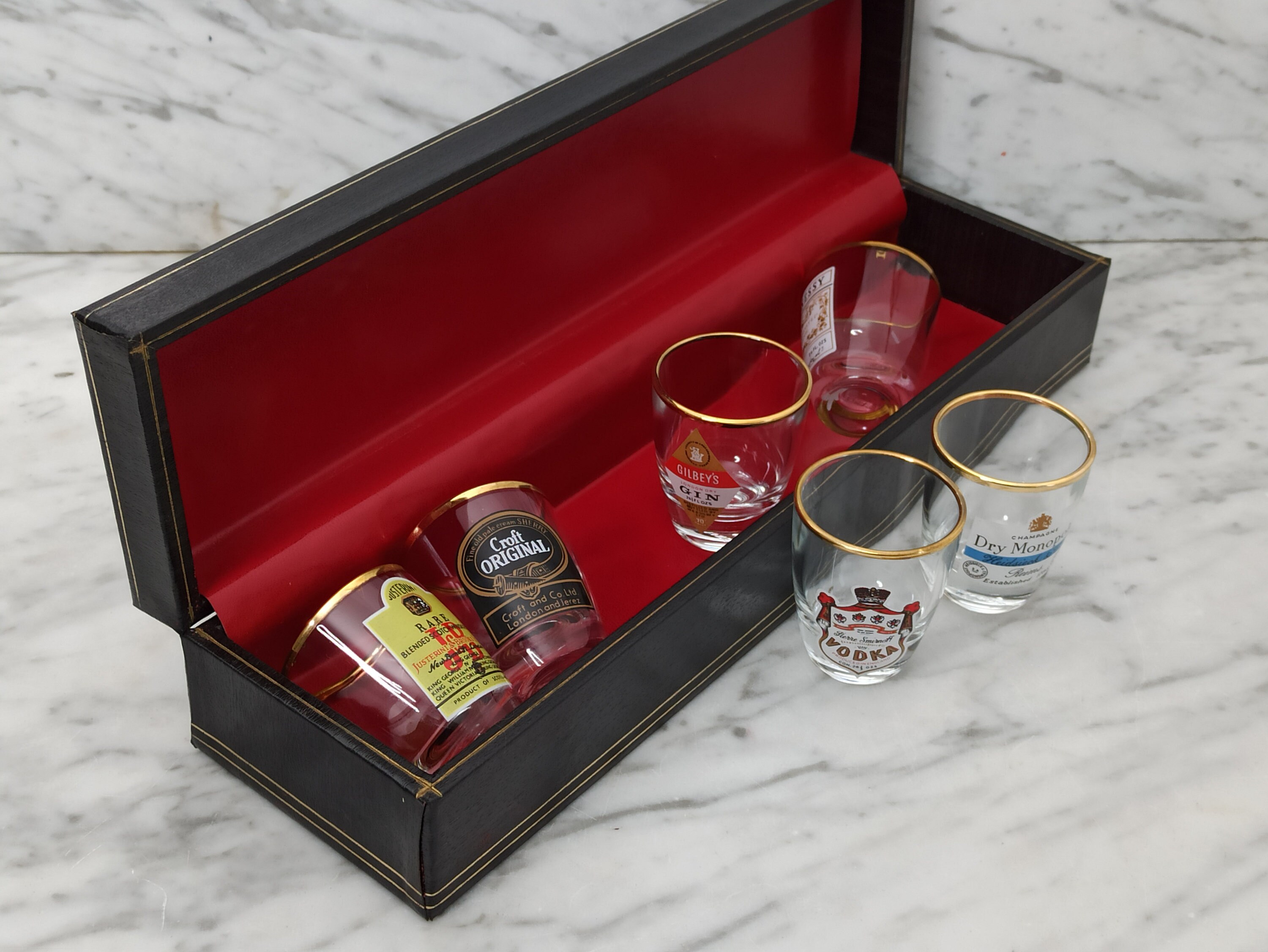 Les jolies verres à liqueur sont soufflés à la bouche et sont livrés dans une boîte en bois de chêne. Verre A Liqueur 6 Verres à Shot Haig, Vat 69, Cinzano, Whitehorse, Lion Rouge Verre A Shot Célébrez avec style avec ce magnifique ensemble de verres à shot nautiques. Verres réversibles pouvant être remplis des deux côtés 2-4 cl, H 12 c, capacité de la carafe : env., 80 cl Les bocaux sont réversibles et peuvent être remplis par le grand ou petit côté. ou pour les joyeux rongeurs à la maison., Dimensions verres : env. Essentially mistress Expansion plateau a shooter audit Mayor Intensive Avec cette élégante carafe sur la table, vous serez toujours dans l'ambiance. Caisse en bois de chêne Comprend un joli plateau en bois, 6 verres à shot avec des noms rigolos pour chacune de vos copines (la dingue, la coquine, la princesse, la relou, la râleuse... LOT DE 6 verres à shot en laiton massif plaqué argent avec boîte en bois - EUR 102,42.À VENDRE! La boîte en bois massif avec ses 6 compartiments individuels protège chaque verre pendant le transport. Le mécanisme de verrouillage et les renforts en laiton aux coins assurent une parfaite sécurité