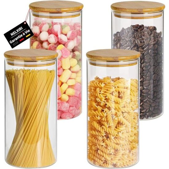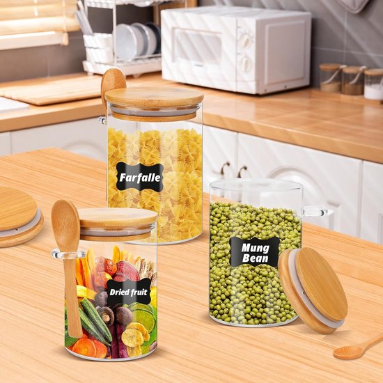 Couvercles hermétiques en bambou : nos bocaux en verre avec couvercle avec boucle d'étanchéité en silicone créent un joint hermétique qui maintient l'humidité, la poussière et d'autres contaminants hors du bocal, ce qui permet de garder vos aliments frais plus longtemps, de sorte qu'ils sont parfaits pour les flocons d'avoine et les plats d'accompagnement faits maison Bocal épices Thé Café Hermétique Lot De 42 Bocaux En Verre Avec Idéal pour le sucre, le sel, le thé et les fruits secs, il conserve leurs saveurs. Durable, facile à nettoyer et résistant à l'usure Bocaux Verre Avec Couvercle à Visser Set De 4 Bocaux à épices Avec Un Couvercle En Bambou Et Cuillère Bocal En Verre Avec Couvercle Et Cuillere Peut garantir que leur cuisine garde les articles organisés, rend leur maison plus propre et plus ordonnée, et plus confortable à vivre Pour une cuisine bien organisée ! Ce lot mega complet de 42 pièces inclut 4 bocaux de 700ml, 4 de 530ml, des patins antidérapants, des étiquettes... Nombreuses utilisations : les bocaux hermétiques sont adaptés pour stocker divers ingrédients, collations ou autres aliments, tels que les biscuits, le thé, les bonbons, les grains de café, les fruits secs, les noix et les épices. Cadeau parfait : ces boîtes en verre sont un cadeau exquis, créatif et tendance pour la plupart des gens. Ces bocaux peuvent vous aider à trier et à ranger, ajouter de la beauté à votre comptoir Des bocaux pratiques et hermétiques pour conserver la fraîcheur de vos épices et de les ranger.