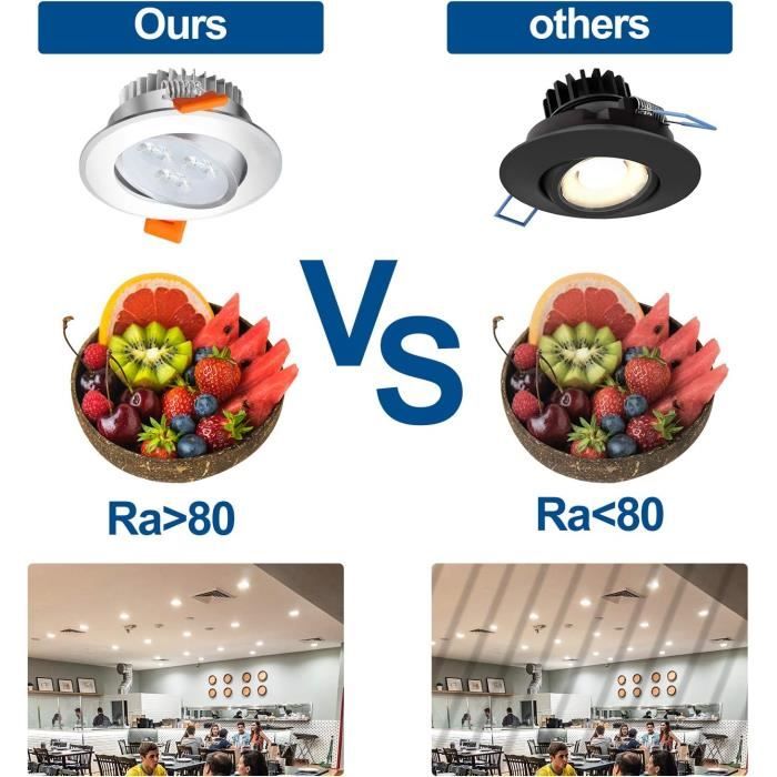 AJW-Lot de 6 Spot Encastrable LED Rotatif, 5W 500LM 3000K IP44 60° Rotatif Plafonnier Encastré Lot de 20 Spot LED Encastrable 3W Blanc Froid 6000K 245LM Spots de Plafonnier Encastr Equivalent 40W incandescence pour Salon, Salle de Bain, Cuisine ; RRP... Spot Led Interieur Encastrable Extra Plat Lot De 20 Spots LED Encastrables Spot Encastrable LED 3W Equ. 25W Température De Couleur: Blanc Ampoules Led Il sont capables de durer jusqu'à 10 fois plus longtemps qu'un éclairage halogène et vous permet de réduire jusqu'à 50% votre consommation énergétique. Il...