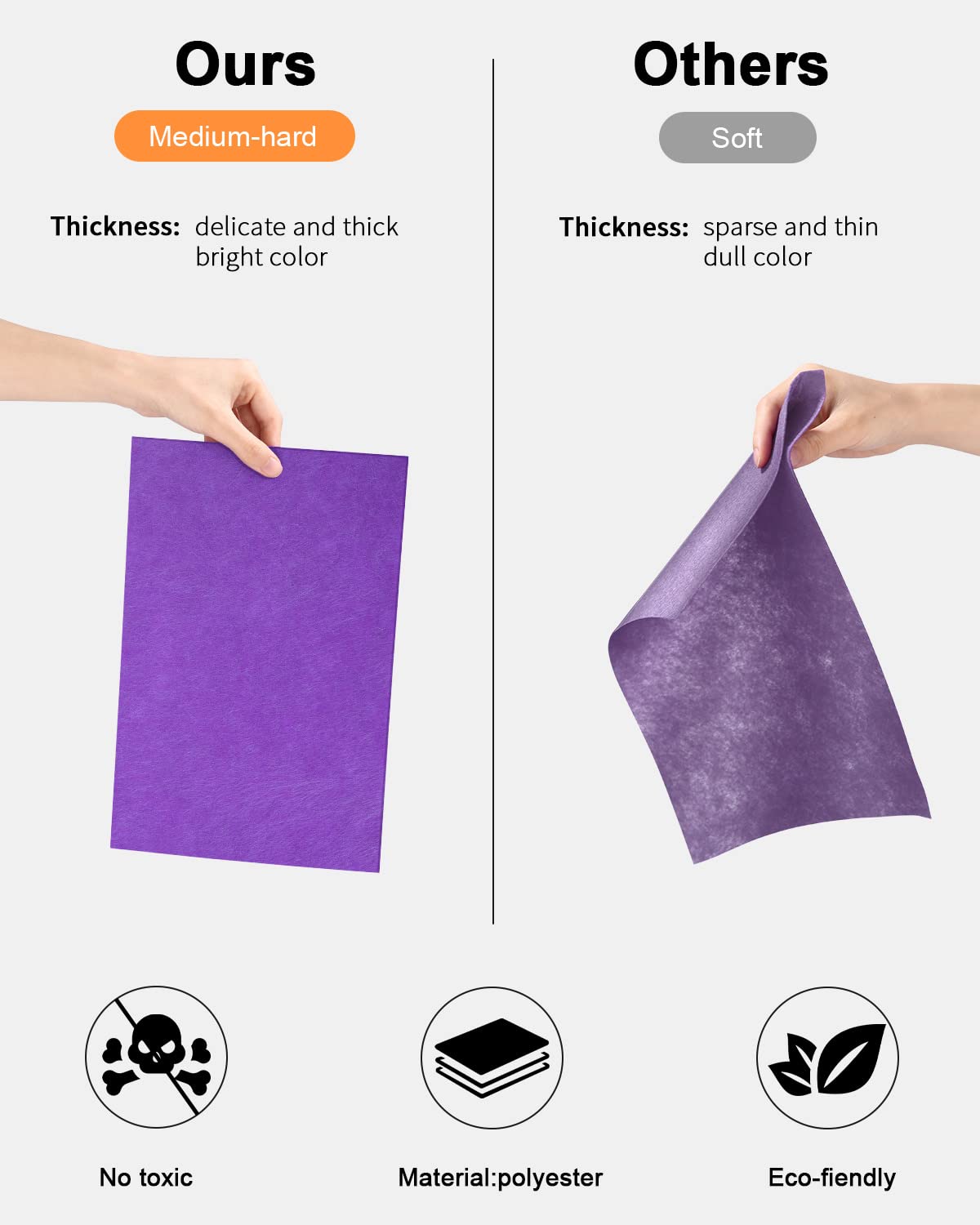 Spécification : Quantité: 50 couleurs différentes, chaque couleur par pièce. Vous pouvez offrir le travail terminé à votre famille et à vos amis comme cadeau de Noël pour commémorer cet événement. Feuille de Feutre, 40Pcs Tissu en Feutre, 20 x 30c Feutrine Loisir Large choix de feutres de loisirs traditionnels, robustes et unis, convenant à une grande variété de projets de loisirs, de découpage et de couture ✿【Merveilleux cadeau】:-Pour les enfants, ces Tissu en Feutre sont le cadeau idéal pour exercer leur créativité et leur sens pratique. Feuille Feutrine Moinkerin Tissu En Feutre, 50 Couleurs Feutrine 40X30cm Pour Le Bricolage, Le Patchwork, La Couture, Les Feuilles De Feutre, L'Art Et L'Artisanat (30X40CM Feutrine Loisir Creatif ✿【Taille】:-6 X 6inch(10X10cm),l'épaisseur est d'environ 1 mm. ✿【Matériau】:-Les tissus en feutre sont fabriqués en polyester de haute qualité, épais et ferme, lavable, pas facile à boulocher, facile à couper, et bonne adhérence ! Vous pouvez couper vous-même la taille que vous souhaitez. Promo Foire Des Petits Prix Du Loisir Créatif Pour Le Départ En...