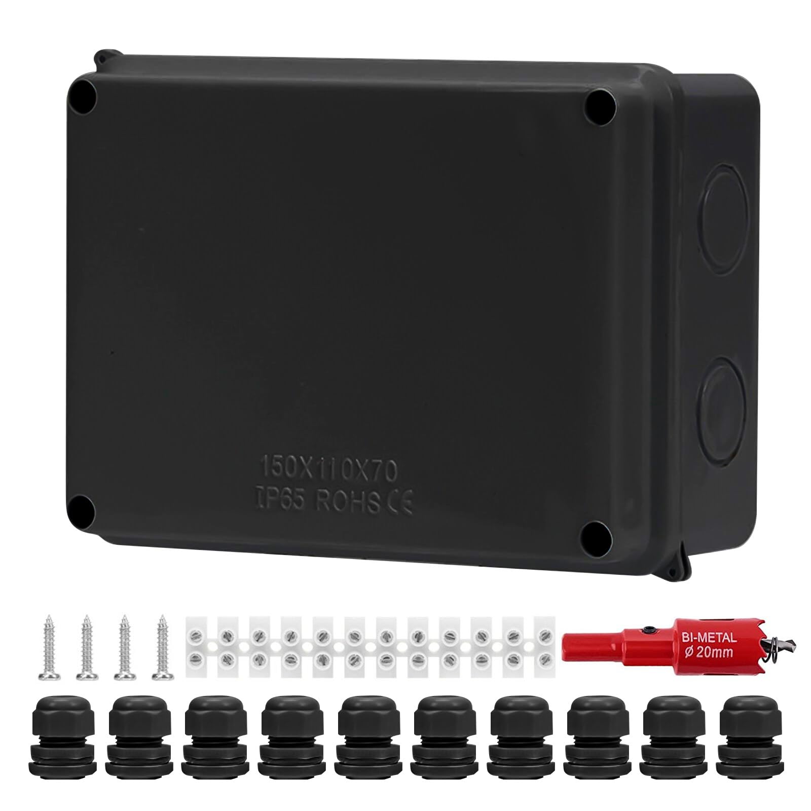 Coffret Electrique Etanche,Boite De Derivation,Boite Etanche Electrique Large Gamme D'applications Dimensions boite etanche electrique exterieur env 200 x 100 x 70 mm, peut accueillir jusqu' 8 c bles 12-16, convient pour acheminer et serrer solidement les fils, id al pour une installation dans les sous-sols, les garages ou les jardins, tanch it IP65 Boite de derivation electrique est quip d'un ruban d' tanch it haute densit et la rainure d' tanch it du couvercle s'adapte parfaitement pour emp cher l'eau, la poussi re ou l'humidit de p n trer, prot geant les c bles internes et peut tre utilis e l'int rieur et l'ext rieur, Installation DIY Une s rie de poteaux d'installation sont r serv s l'int rieur du boite electrique pour faciliter la connexion des borniers ou d'autres composants des trous sont galement r serv s dans les trous lat raux vous pouvez utiliser l'ouvre-trou m24 quip pour ouvrir les trous BOITE DE DÉRIVATION Large Gamme D'applications: Dimensions boite etanche electrique exterieur env 200 x 100 x 70 mm, peut accueillir jusqu'à 8 câbles ø 12-16, convient pour acheminer et serrer solidement les fils, idéal pour une installation dans les sous-sols, les garages ou les jardins Description du produit Large Gamme D'applications Dimensions boite etanche electrique exterieur env 200 x 100 x 70 mm, peut accueillir jusqu' 8 c bles 12-16, convient pour acheminer et serrer solidement les fils, id al pour une installation dans les sous-sols, les garages ou les jardins tanch it IP65 Boite de derivation electrique est quip d'un ruban d' tanch it haute densit et la rainure d... Boite Derivation Etanche Boîte De Dérivation étanche IP68 Certification TÜV 4 Voies Avec M25 Pour Petit Boîtier électrique Noir De 5mm-12mm De Diamètre Avec Borne à 5 Broches Pour Extérieur | Lumière | Jardin Boitier Electrique Etanche Exterieur Équipement Complet: Boitier electrique etanche contient 1 terminal 12 broches, 1 terminal couleur 3 entrées et 6 sorties, 8 connecteurs m24, 1 ouvre-trou m24 et 4 vis il y a suffisamment d'accessoires pour répondre facilement aux besoins d'utilisation Installation DIY: Une série de poteaux d'installation sont réservés à l'intérieur du boite electrique pour faciliter la connexion des borniers ou d'autres composants des trous sont également réservés dans les trous latéraux vous pouvez utiliser l'ouvre-trou m24 équipé pour ouvrir les trous