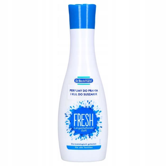 Sèche-linge : dans la boule de séchage : verser 2 à 3 éclaboussures de parfum de linge (appuyez sur l'éponge en maille vers le bas). Remarques importantes : ne pas mettre le parfum de linge dans le compartiment d'adoucissant avec d'autres liquides. Placez la boule de séchage à la verticale pour le linge humide. Parfum Linge Dr. Beckmann Détachant Avant Lavage Déo & Sueur Bajoah Parfum De Linge Nettoyant et hygiène lave linge 250g désodorise et rafraichit DR BECKMANN Le Parfum de Linge contient des microcapsules avec formule concentrée qui se déposent délicatement sur les fibres des vêtements pendant le cycle de rinçage de... Attendez brièvement que l'éponge en maille absorbe le liquide. Les parfums spécialement encapsulés diffusent leur parfum non seulement après le lavage, mais aussi lorsque vous sortez du placard et portez le linge. À chaque mouvement et à chaque friction, un peu plus de parfum du linge se libère et vous dorlote ainsi jour après jour - Convient également pour les textiles en microfibre et les vêtements fonctionnels. Utilisation du chiffon : versez 2 à 3 éclaboussures de parfum de linge sur un chiffon en coton propre, placez le chiffon pour le linge humide et démarrez immédiatement le sèche-linge. Promo La Gamme dr Beckmann chez E.Leclerc