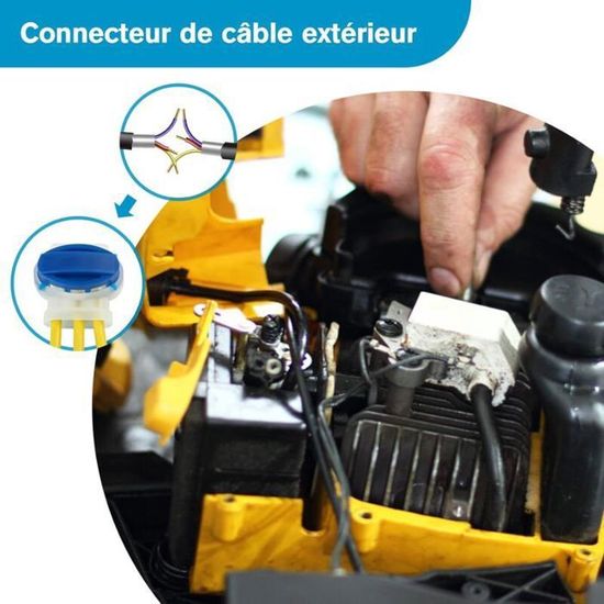 【Connecteur de Câble Pratique】Le matériau de la coque est le PA66., La couverture est très solide, difficile à casser et avec plus d'isolation. 【Facile et Sûr】Sans soudure ni décapage ! C'est un accessoire de rechange idéal pour les tondeuses à gazon robotisées. Connecteurs Câble Robot Tondeuse 8 Pièces - Remplis Ensemble]: Contient un total de 8 connecteurs, ce type de connecteur est un terminal de câblage à deux ou trois fils, convient pour un diamètre de fil de... Cable Pour Robot Tondeuse IPobie 20 Pièces Connecteurs De Câble Remplis Des Résines,Parfait Pour Jardin & Extérieur Et Tondeuse Robot Husqvarna Automower Connecteur Avec les connecteurs de câble, les extrémités de câble du câble périphérique peuvent être facilement connectées. 【Large Application】 Convient non seulement pour la tondeuse à gazon robot, mais également comme pince pour câble et fil extérieur. Insérez simplement les fils et appuyez sur le connecteur pour le fermer avec une pince. Le connecteur de câble pour tous les modèles de robots de pelouse courants. Insérez l'extrémité du fil aussi loin que possible, puis utilisez une pince pour appuyer sur la partie bleue pour fixer et connecter le fil.