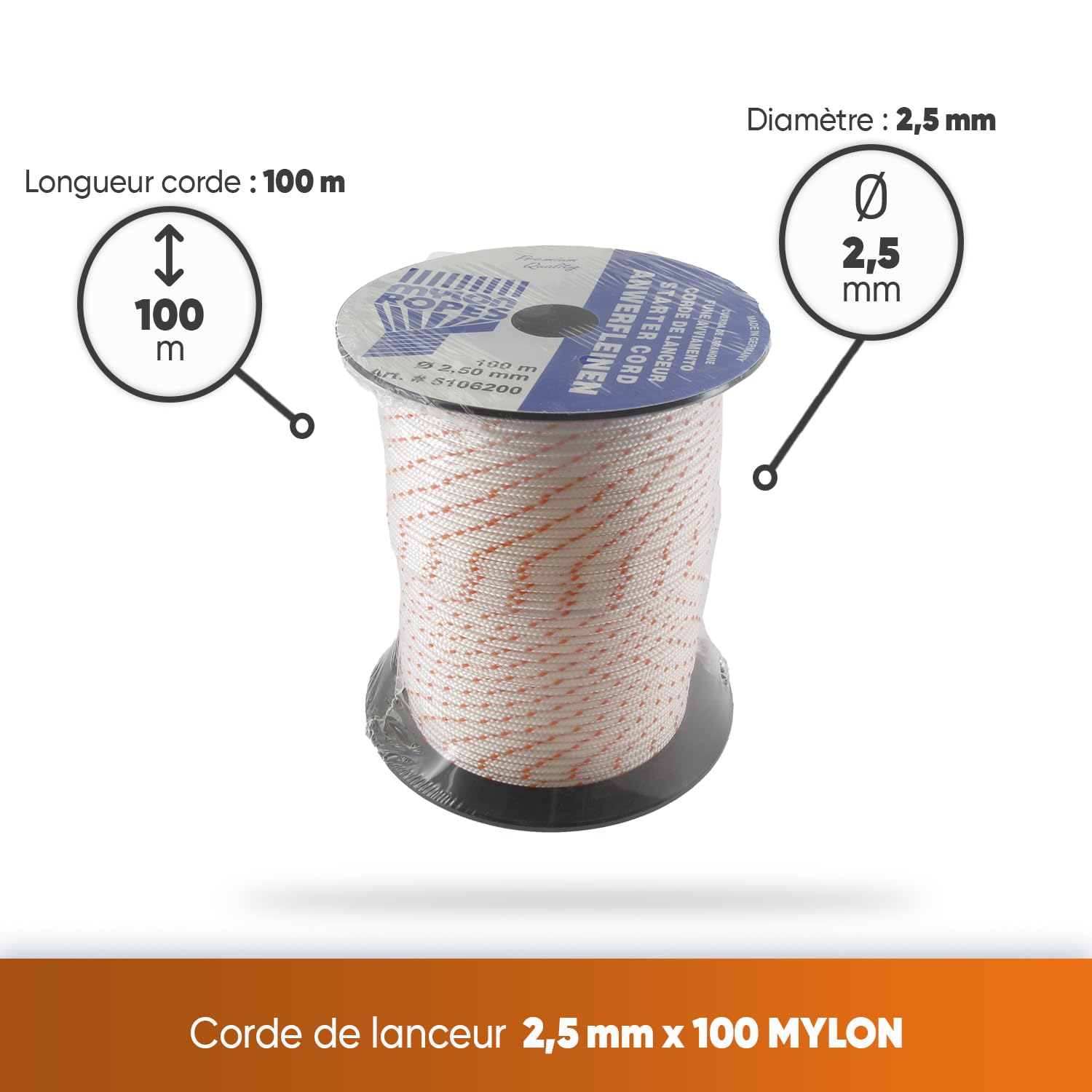 Depuis près de 30 ans, notre entreprise française spécialisée oeuvre dans la distribution de pièces détachées d’origine ou adaptables, d’accessoires, d’équipements de protection individuelle (EPI), de vêtements et de consommables de motoculture, qu’elle propose à des tarifs très concurrentiels. Très bien. Yannick r Fabriquée selon des normes de qualité supérieure, elle incarne la garantie d'une mise en marche sans faille pour une gamme d'équipements essentiels, transformant chaque démarrage en une expérience fluide et puissante. Corde Lanceur Tondeuse Honda Fil Démarrage Tondeuse Corde De Lanceur Polyamide 4mm - Rouleau 100m - Pour Tondeuse, Débroussailleuse, Tronçonneuse - Blanche Liseré Rouge Pièce Motoculture Rouleau 100m Corde De Lanceur Motoculture POLYVALENTE : Convient à une variété d'applications, ce qui en fait le choix idéal pour remplacer la corde de lanceur sur vos tondeuses à gazon, de taille-haies, tronçonneuses, débroussailleuses., ., ., LA RÉFÉRENCE PROFESSIONNELLE : Nous proposons plus de 10 000 pièces détachées, accessoires et équipements de protection dédiés à l’univers de la motoculture., ., ., Une vaste gamme de produits de qualité vendus au meilleur prix. CARBURATEUR JARDIN OUTIL Haute Qualité Gazon Tondeuse Débroussailleuse... Corde de lanceur diamètre 6 mm ROULEAU 100M : Avec un rouleau de 100 mètres, cette corde lanceur 2,5mm vous offre une solution à long terme, éliminant le besoin d'achats fréquents et vous permettant de maintenir vos équipements en parfait état. Grâce à une structure optimisée et un rayonnement mondial, la société fait figure de leader dans la vente par correspondance de pièces détachées qu’elle peut fournir très rapidement grâce à son large stock de 100 000 pièces adaptables.
