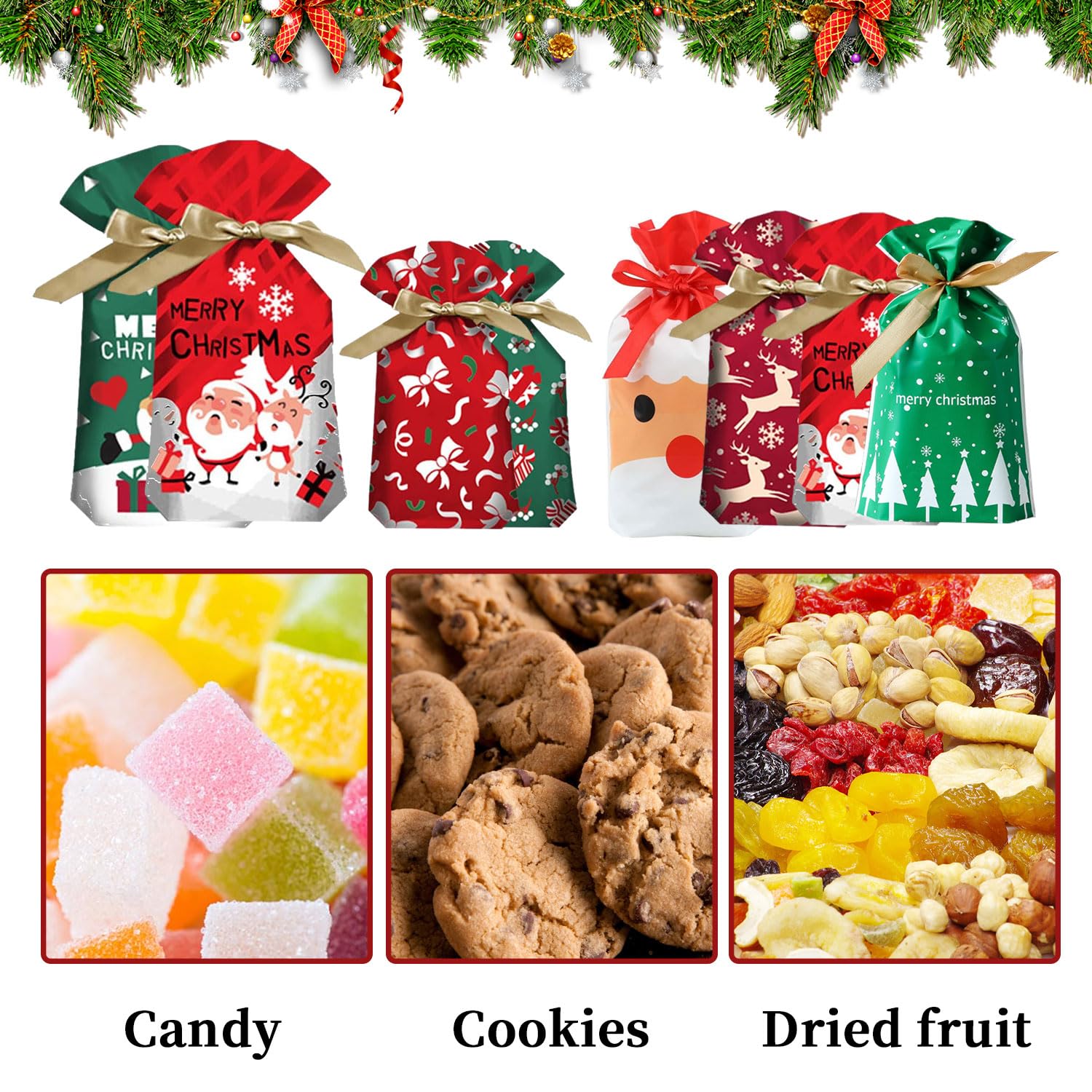 Remplissez ces sacs avec des bonbons, des biscuits, des chocolats, des snacks, des cadeaux, ou des petits jouets, donnez-les aux invités et amis de votre fête de Noël! Très adapté pour remplir des bonbons, du chocolat ou des biscuits, convient pour les sacs de snacks de Noël, les sacs cadeaux de fête, les fournitures de jeux de Noël, les récompenses en classe pour les enseignants, les boîtes de bonbonnières, les emballages cadeaux de Noël, les décorations de Noël. DESIGNS DE FÊTE : chaque sac comprend un message de Noël. Remplissez-les de bonbons et de cadeaux pour que votre cadeau se démarque des autres sous le sapin de... Parfait pour les sacs cadeaux de Noël familiaux, les sacs cadeaux de Noël, les sacs de bonbons, les sacs jouets, les sacs cadeaux, les promotions de Noël. 🎅【Matériel Premium】Ce sac cadeau de Noël est fait de plastique de qualité, léger, inodore, durable et réutilisable. Spécifications: Matériau: Polyéthylène Couleur: Comme indiqué dans l'image Contenu de l'emballage: 40 x Sac de Bonbons de Noël (grands : 23 x 34 cm, moyens : 15 x 23 cm, petits : 12 x 17 cm). 🎅【Modèles Simples et Originaux】Tout le design est bien sûr sur le thème de Noël, de couleur rouge et vert, et les surfaces sont imprimées avec des dessins de Père Noël. 🎄【Le Forfait Comprend】Ce sac cadeau de Noël comprend 40 sacs cadeaux dans 8 motifs différents, 5 de chaque motif. Pas facile à déchirer et pour une utilisation durable. Ilustración de Diseño De Impresión Superposición Número 40 y más Pochon De Noel Asoulin Lot De 40 Sacs Cadeaux De Noël Avec Cordon De Serrage Avec Petit Sachet Noel 🎄【Large Gamme D'applications】Emballage de grande valeur pour emballage cadeau de Noël.