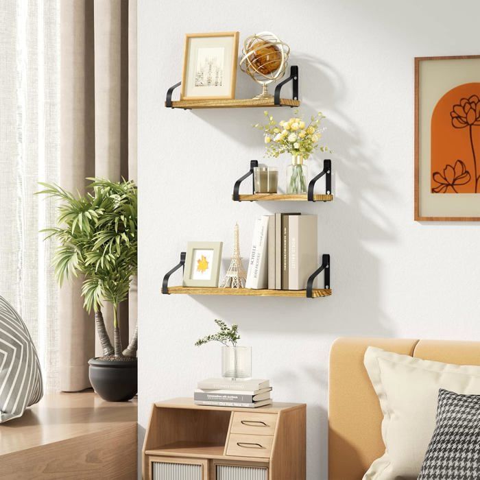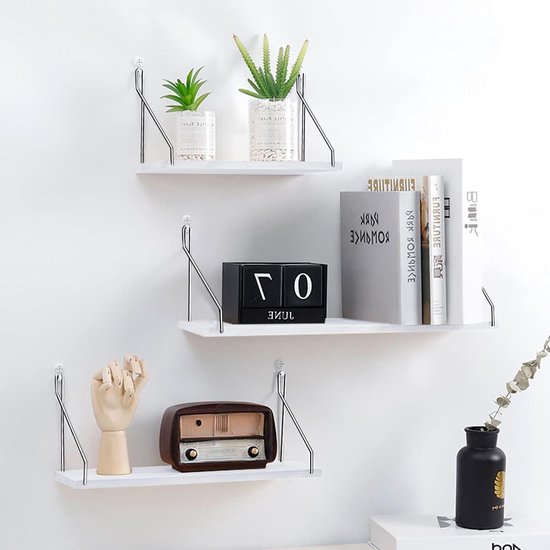 【Matériaux de haute qualité】Étagère de rangement et robuste – Le plastique non toxique et renforcé d'ambiance, le rend Il vous suffit d'utiliser chiffon pour le nettoyer. Détails : · Dimensions : 1 grande: 50x15x11 cm, 1 Moyenne : 40x15x11 cm, 1 Petite : 30x15x11cm · Epaisseur: 2 cm · Capacité de charge maximale: 15 kg par étagère... Avec son design innovant et son rétro, c'est l'étagère parfaite pour ranger chaque article. Veuillez retirer immédiatement l'eau de avec chiffon et sec. Petite étagère (L x l x h) : 33,77 x 3 x 4,33 pouces., maximale : 5 kg. Avertissement De Sûreté Ne pas surcharger les étagères avec un poids excessif. EUGAD Étagères Flottantes Lot De 3, Étagères Murales, Pour Découvrezles étagères de la marque CASARIA® d´une qualitéexceptionnelle. L'étagère murale Carve décorative offre espace supplémentaire et une meilleure commodité lorsque vous décorez le mur. Contenu : 3 étagères murales flottantes (petites, moyennes et grandes). Donnez àvotre mur une touche très personnelle et individuelle. Caractéristiques : Taille : grande étagère : 22,8 x 4,33 x 4,33 pouces. L´élégante étagère murale se distingue notamment grâce à lafabrication de haute qualité et à l´utilisation de matériau de premierchoix. Description du produit Caractéristiques : Fabriqué à partir de bois plastique de haute qualité, résistant à l'humidité et à la déformation avec sa grande capacité de stockage. Plateau central : 18 x 3,54 x 4,33 pouces. Matériaux de haute qualité¿Étagère de rangement et robuste ¿ Le plastique non toxique et renforcé d'ambiance, le rend Il vous suffit d'utiliser chiffon... 【Large utilisation】 L'étagère murale flottante est idéale pour ranger des livres de poche, des CD, des haut-parleurs, des pots de plantes en argile, des plantes artificielles, des composants de sécurité, des brosses à dents, des fioritures, des vases, des réveils, des cadres photo, etc. Etagere Blanche Set De 3 étagères Murales Flottantes 60x15 - Wit, Design Moderne Pour Salon Et Chambre étagère Murale Blanche 1 sac d'accessoires (y compris les vis, les boulons d'expansion en plastique)., 1 boîte en carton. 【Design simple et élégant】 Design simple et élégant peut être utilisé pour décorer la chambre à coucher. Avantages du produit : Effet flottant Produit de qualité de la marque Casaria® Capacité de charge élevée Matériau en MDF robuste Design simple Hauteur de 3,8 cm Caractéristiques techniques : Dimensions (LxlxH) 110 x 23 x 3,8 cm Couleur : gris brillant Dimensions support de fixation (LxlxH) : 65 x 14 x2,7 cm Poids : 3 kg Charge maximale : 15 kg Matériau : MDF (panneau de fibres à densité moyenne) selon lanorme E1 Contenu de la livraison : 1x Etagère murale flottante gris brillant 1x Support de fixation Matériel de montage Remarque :Veuillez noter que les couleurs affichées peuvent différer légèrementdes couleurs réelles selon vos paramètres de l´écran. Vous pouvez également monter plusieursétagères côte à côte ou disposées les unes sur les autres. Respecter la capacité de charge maximale de 5 kg pour garantir la sécurité et éviter les dommages à la structure. Facile à installer avec le matériel nécessaire.
