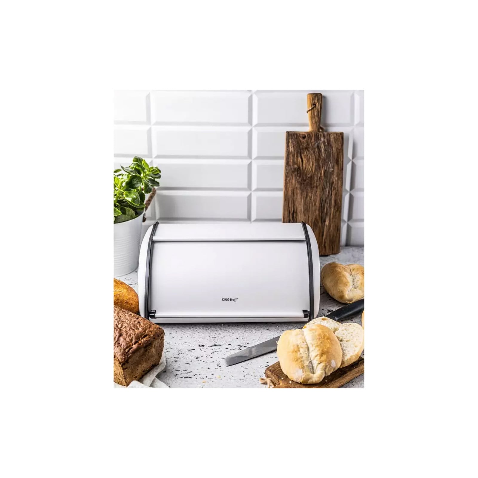 Construction légère et robuste. Boîte à pain en acier, matériau écologique et hygiénique. 5908287217232 CHLEBAK STALOWY KINGHOFF KH-1723 KINGHOFF Ce récipient à pain roll-top KINGHOFF en acier inoxydable laqué conserve tous types de pain. Avec ses dimensions de 15 cm de hauteur, 24 cm de largeur et 36 cm de longueur, il est facile à nettoyer et résistant aux dommages. Son couvercle s'ouvre et se ferme en douceur, offrant un accès pratique Dimensions : 36 x 24 x 15 cm. Le couvercle anti-collision ne prend pas de place supplémentaire lorsqu'il est ouvert.