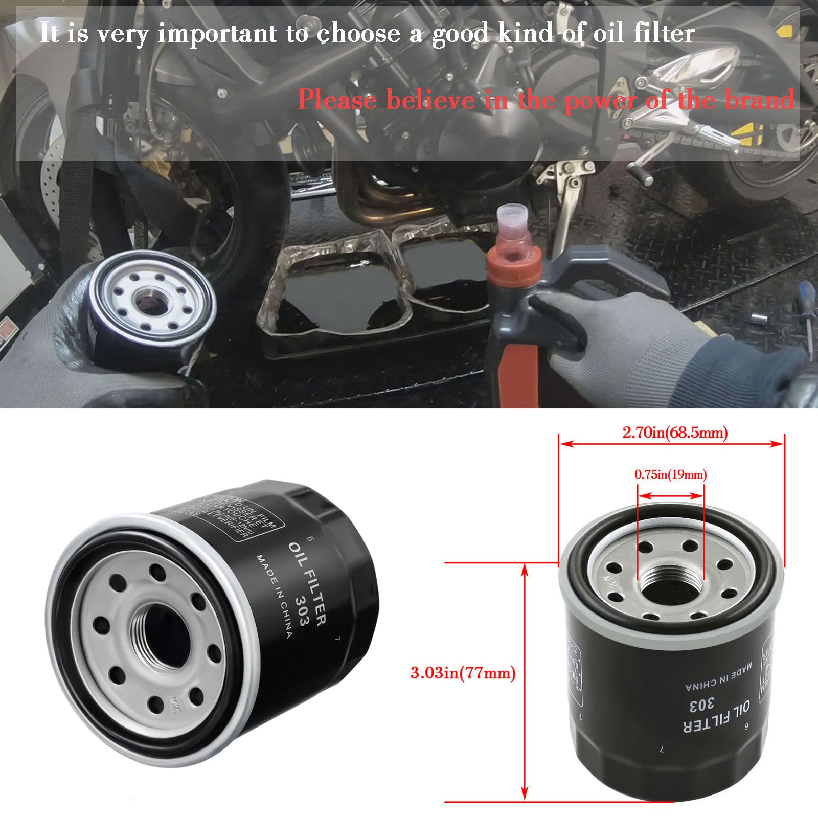 Qui nous sommes À propos de notre société : Notre société est spécialisée dans la production de toutes sortes d'accessoires automobiles et de motos et de produits connexes. Performances stables La conception haute performance du produit peut éliminer efficacement les polluants produits par la combustion de l'huile, avec des performances élevées du moteur et des performances stables du produit. Road Passion Filtre à l'huile HifloFiltro HF 303 C filtre à huile chromé Honda Kawasaki Yamaha Polaris - HF303C Kit Bi Xénon HID 35W ou 55W pour Yamaha YFM 450 Wolverine - GARANTIE A... Yamaha Wolverine Filtre à Huile Yamaha Quad YFM Wolverine 4x4 - 450 Cc Filtre Auto Nous avons de nombreuses années d'expérience dans la fourniture d'accessoires et de pièces de rechange. Remarque : ce produit ne s'applique qu'aux modèles spécifiques répertoriés, veuillez vérifier attentivement la description du produit Nom du produit : 303 Filtre à huile ; Qualité du produit : 100% neuf ; nos produits sont soumis à des tests de qualité rigoureux et répondent aux normes OEM ou les dépassent Matériel de haute qualité Utilisant un matériau de haute qualité, le boîtier du filtre a une pression stable, solide et durable, anti-corrosion, résistant à l'usure et durable. Modèles applicables: compatible avec Honda 15400-PFB-007 / 15410-MM5-003 / 15410-MM9-003 / 15410-MM9-013 / 15410-MM9-305 / 15410-MM9-405 / 15410-MM9-P00 / 15410-MM9-P01 / 15410-MM9-P03 / 15410-MT7-003 / 15412-MT7-003; compatible avec Polaris 308 49 63