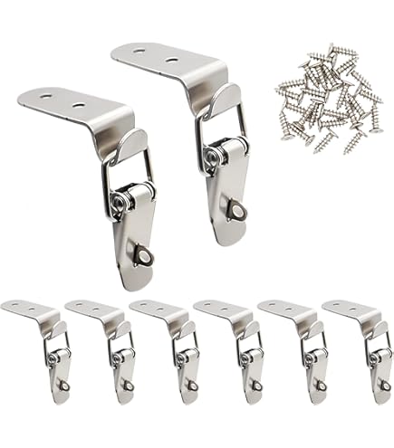 Caractéristiques : Contenu de l'emballage : 6 loquets à boucle. Dimensions : 49 x 22 mm (L x l) ; ouverture : 13,2 mm. Notre boucle a été améliorée, et le design en bec de canard est simple et solide, et la prise en main est solide et ne tombe pas facilement. fermoir à bascule Loquets à ressort étui de loquet droit en acier Matériau : ce verrou à ressort est fabriqué en acier inoxydable, et sa surface est revêtue par un processus d'électrophorèse, qui ne rouille pas facilement et durable. Loquet À Bascule En Acier Inoxydable Ressort Matériau : fabriqué en acier inoxydable avec peinture par électrophorèse, avec une structure simple, facile à installer, les vis de montage sont incluses. Remarque : Veuillez mesurer la taille de votre article avant l'achat. Dimensions : 49 x 22 mm (L x l) ; diamètre du trou : 13,2 mm., Couleur : noir. Lot de 20 Clips de Serrage à Bascule à Ressort, Loquet à Bascule en...