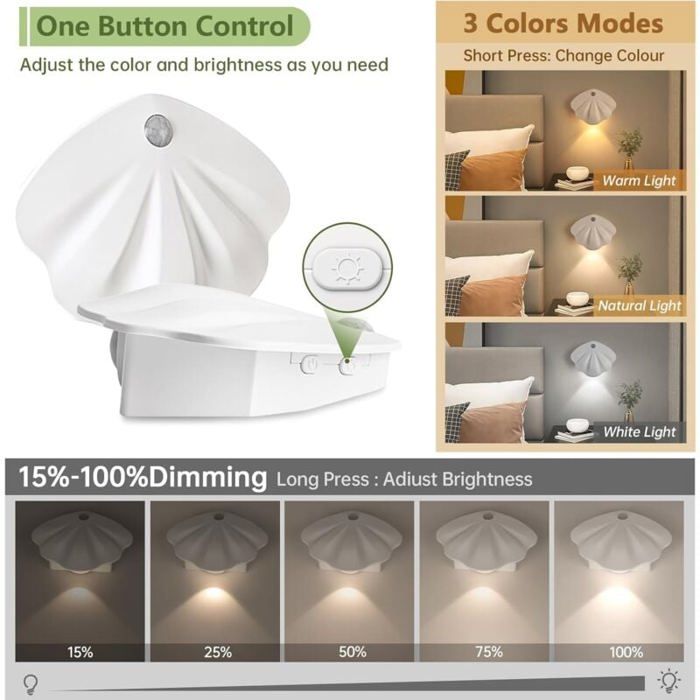 🔧Installation Facile : L'installation de cette veilleuse LED avec détecteur de mouvement est très simple. ✨3 Modes de Couleur et Contrôle de Gradation en Continu : Cette veilleuse LED avec détecteur de mouvement offre trois modes de température de couleur (lumière blanche 6000K, lumière naturelle 4000K, lumière chaude 3000K) et permet un contrôle de gradation en continu afin que vous puissiez ajuster la luminosité selon vos besoins à tout moment. Il prend en charge la charge rapide USB-C, peut être utilisé de manière stable pendant des heures. La lumière douce évite la fatigue oculaire tout en créant une atmosphère chaleureuse dans votre maison. Le processus d'installation ne nécessite aucun outil ni perçage, évitant ainsi d'endommager le mur. Il ne nécessite aucun perçage et n'endommage pas les murs. Cinq réglages pratiques - veilleuse enfant]- La veilleuse bébé à intensité variable a 3 modes d'éclairage et 2 luminosités réglables... ✨ Veilleuse LED magnétique qui dissipe l'obscurité Avez-vous déjà été agacé de trébucher dans le noir en vous levant la nuit ? Notre veilleuse LED magnétique est spécialement conçue pour éliminer ces soucis ! Paramètres du produit Matériau : PVC Taille du produit : 8 x 7,5 x 1,7 cm / 3,1*2,9*0,7 pouces Gradation : trois températures de couleur : lumière blanche (6000 K) / lumière naturelle (4000 K) / lumière chaude (3000 K) avec gradation continue Portée de détection : La distance de détection est de 3 à 5 m de l'avant, de 1 à 3 m du côté, l'angle de détection est de 120° Réglage du délai : 20 s-30 s-60 s Deux modes : mode jour/nuit commutable, clic cyclique en mode induction La lumière clignote une fois pour le mode jour La lumière clignote deux fois pour le mode nuit Liste de colisage : Veilleuse magnétique * 2 Câble USB*2 Manuel d'instructions*1 Tuile magnétique * 2 🔋Longue Durée de vie de la Batterie et Charge Rapide USB-C : La veilleuse alimentée par batterie est équipée d'une puissante batterie de 800 mAh et a une très faible consommation d'énergie de seulement 0,6 W. Il est parfait pour les placards, les escaliers, les cuisines, les couloirs, les salles de bains ou les zones de tête de lit et fournit toujours l'éclairage parfait pour créer une maison sûre et confortable. Même en cas d'utilisation prolongée, aucune chaleur excessive n'est générée, ce qui garantit la sécurité. Lampe De Nuit Magnétique Paquet De 2 Lumières Sous-meuble Avec Détecteur De Mouvement, Lumières LED Rechargeables USB-C Veilleuse Detecteur De Mouvement Rechargeable Si aucun mouvement n'est détecté dans les 30 secondes, la lumière s'éteint automatiquement. Après la charge, il fournit une source lumineuse stable pendant une longue période. 🔧 Installation facile et utilisation flexible Grâce à sa conception magnétique, la veilleuse avec détecteur de mouvement peut être facilement fixée sur n'importe quelle surface métallique Installé avec le ruban adhésif double face résistant inclus. Lot de 2 veilleuses LED blanches rechargeables, avec détecteur de 🔋 Longue durée de vie de la batterie et charge rapide USB-C Avec une batterie de 800 mAh et une consommation électrique de seulement 0,6 W.