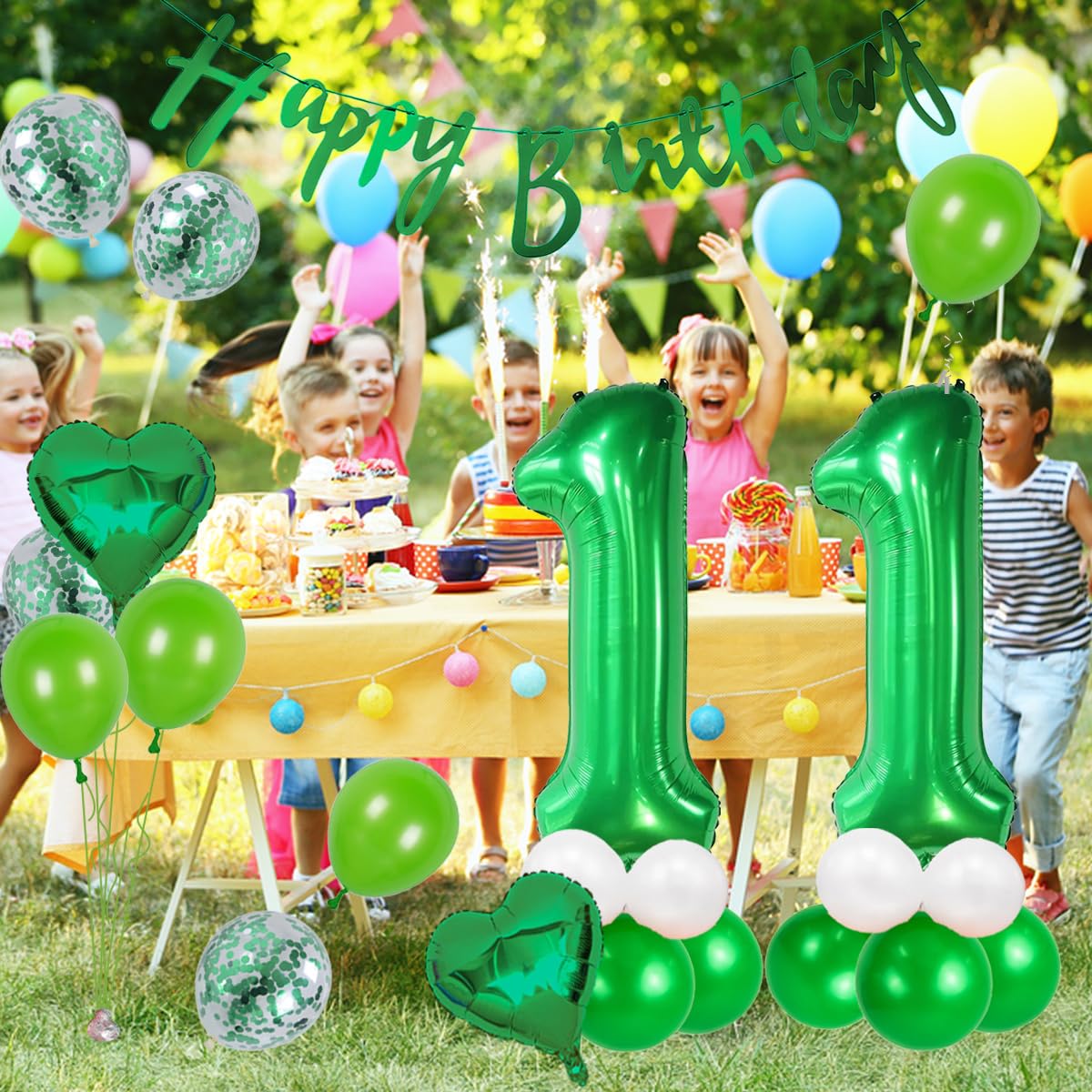 Ensemble De Décorations Vertes - Happy Birthday Il s'agit d'une bannière d'anniversaire pour garçons à bon prix, dont un lot comprend une bannière d'anniversaire et des ballons d'anniversaire, et chaque couleur est soigneusement assortie pour être une présence brillante à la fête d'anniversaire. Qualité supérieure : nos bannières de ballons d'anniversaire sont fabriquées avec des matériaux de haute qualité. La bannière d'anniversaire est une toile de fond digne de décoration de fête d'anniversaire. Bannière « Happy Birthday » Pour Décorations De Fête Assemblage rapide : vous pouvez facilement assembler le pack de décoration d'anniversaire pour garçons. Les couleurs vives des ballons d'anniversaire pour garçons et des bannières sont unifiées. Il suffit d'utiliser des rubans pour attacher les bannières « Happy Birthday » dans l'ordre. Ce sont des décorations d'anniversaire attrayantes pour les garçons, ajoutez différentes couleurs à votre fête d'anniversaire sur le thème de la jungle. La bannière verte Happy Birthday peut être réutilisée si utilisée et stockée correctement. Ensemble de décorations de fête d'anniversaire vert sauge]Cette décoration « Happy Birthday » vert sauge comprend 1 bannière « Happy Birthday », 1 couronne d'anniversaire verte, 1 écharpe d'anniversaire verte de 160 x 9,5 cm, 1 nappe verte et blanche de 237 x 134 cm, 1 rideau de pluie vert 1 x 2 m, 15 ballons vert sauge, 10... Le lot de ballons « Happy Birthday » comprend : Cette décoration d'anniversaire contient 1 bannière d'anniversaire verte, 4 ballons en latex blancs, 4 ballons en latex vert foncé, 4 ballons en latex vert clair et 1 ruban de 10 m.