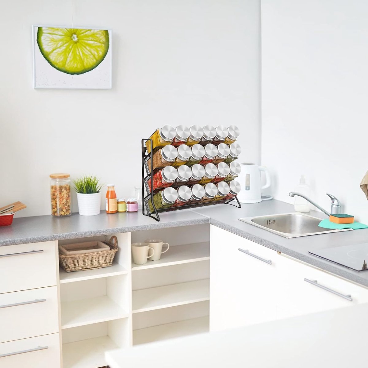 Étagère à épices à 2 niveaux sur pied pour cuisine - Organisateur de comptoir pour herbes aromatiques - Gain de place Il peut être utilisé n'importe où, l'étagère à épices dans la cuisine, l'étagère à rouge à lèvres dans la chambre, etc. Étagère à épices à 2 niveaux sur pied - Organiseur de cuisine pour L'étagère à épices moderne Livingandhome est le compagnon idéal de votre cuisine. Elle garde vos épices à portée de main et se glisse facilement sur les étagères des placards. Conçue pour ranger et organiser vos herbes et épices, elle peut également accueillir des flacons de médicaments, des petits pots, des produits de toilette et des trousses de maquillage. Fabriquées en fer... Revêtu de la finition bronze brillant, il est élégant et fonctionnel et un excellent organisateur. étagère Plan De Travail Étagère D'angle Pour Comptoir De Cuisine – Étagère à épices à 2 Niveaux Pour économiser De L'espace Pour Cuisine, Salle De Bain, Salon (marron Rouille étagère Pour épices Panier surélevé pour empêcher les articles de tomber, et le tapis empêche le débordement. Équipé de pieds antidérapants en caoutchouc pour ne pas rayer, glisser ou glisser. Stable et durable : Cette étagère à épices est fabriquée en acier robuste durable de haute qualité qui est résistant à la rouille. Porte-serviettes en papier de cuisine sous armoire, porte-serviettes en...