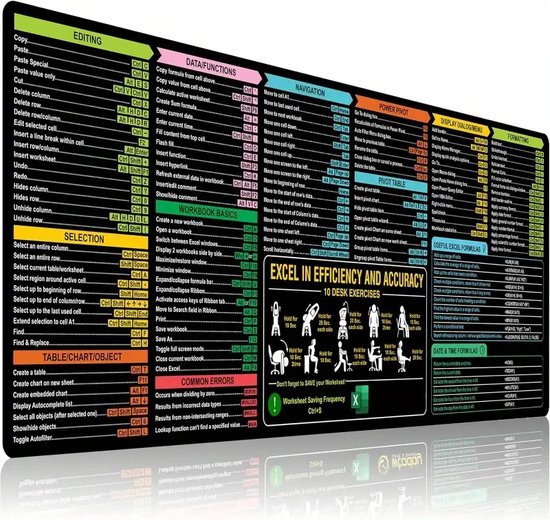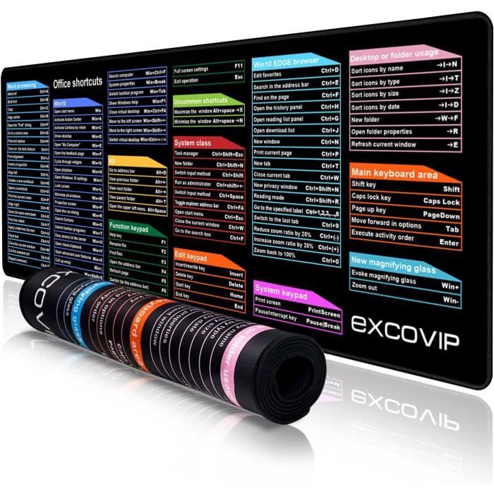 Il peut facilement accueillir votre clavier, souris et autres accessoires de bureau, ce qui en fait un grand tapis de souris parfait pour tout bureau. Doté de raccourcis essentiels, il améliore la productivité et l'efficacité, tout en gardant votre bureau sans rayures. Qualité durable : fabriqué avec des matériaux de qualité supérieure et une attention méticuleuse aux détails, notre tapis de souris XXL assure une longue durée de vie Notre tapis de souris est fabriqué avec des matériaux de qualité supérieure pour garantir une longue durée de vie. Tapis Souris Clavier Excel Tapis De Souris Raccourci Excel Français EXCO-Grand Tapis De Souris ShortSulmouseSub, 31.4x11.8 Pouces, Pour Gamer, Clavier, Ordinateur Portable, Bureau Tapis Souris Raccourci Clavier Français Accessoires De Bureau Idée cadeau parfaite : surprenez vos collègues, amis ou famille qui travaillent régulièrement avec l'ordinateur avec ce sous-main pratique et élégant, leur offrant une expérience de travail plus efficace. Efficacité de navigation : Accès rapide aux commandes grâce à la conception de raccourcis clavier Excel. · Confort XXL:Une surface XXL pour un confort prolongé... Grand tapis de bureau pour clavier en feuille de triche Excel Bords cousus : les bords de ce sous-main d'ordinateur sont cousus avec une technologie anti-effilochage pour protéger contre l'usure, assurant que le tapis de souris reste comme neuf au fil du temps, même avec un usage quotidien et des sessions de jeu lourdes. Base antidérapante : le fond antidérapant solide le maintient bien en place, même pendant les sessions de travail intenses, offrant une surface confortable pour les professionnels.