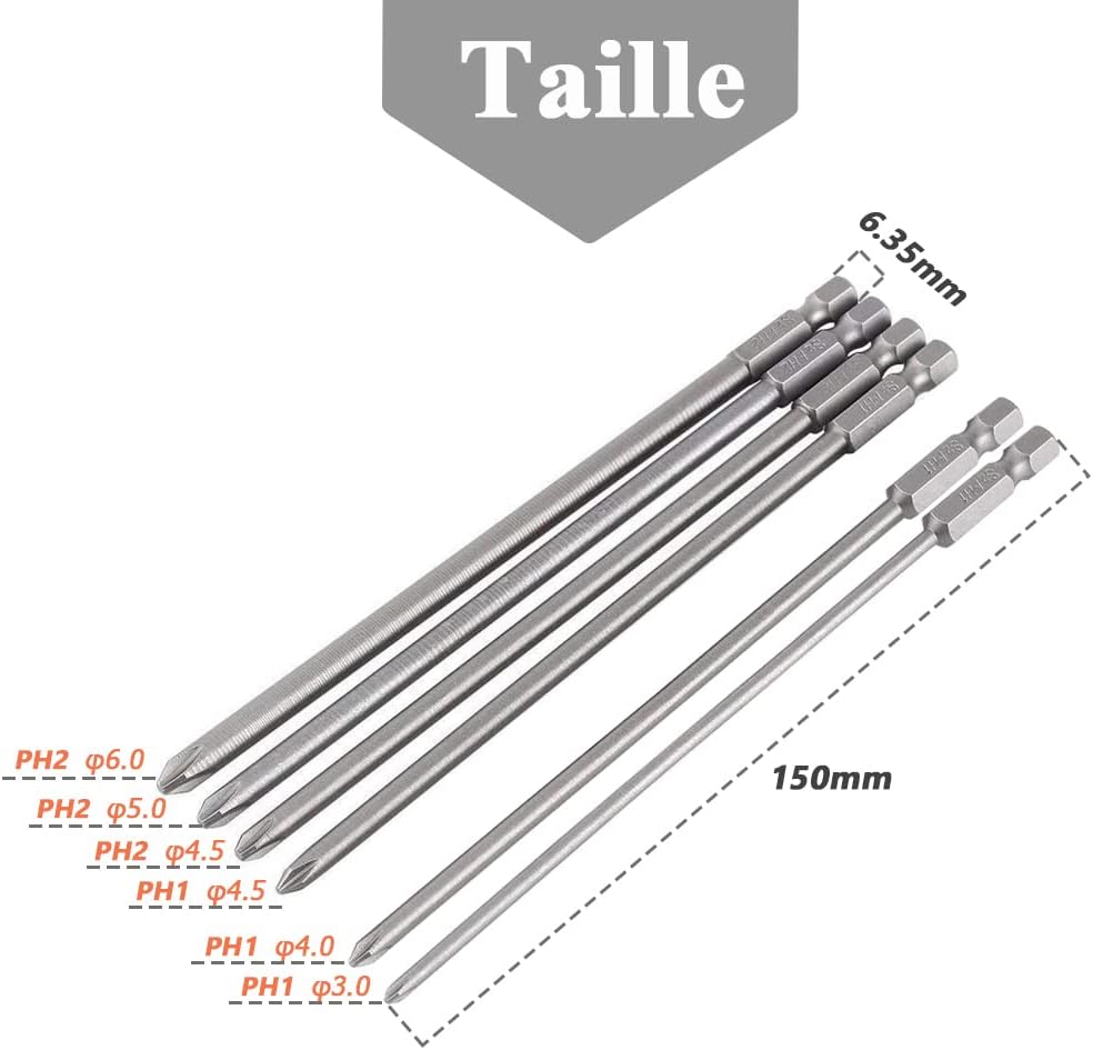 【Répondre à différents besoins 】 Il y a 10 embouts de tournevis qui peuvent répondre à vos besoins d'utilisation et de remplacement Description de Embout de tournevis PH2 à tête cruciforme magnétique, tournevis à percussion, vis 70 mm, tournevis électrique antidérapant, outils électriques 1. Convient aux vissages à fort impact et à haute résistance, notamment aux visseuses, visseuses électriques et perceuses à main, notamment aux visseuses à percussion. 2. Résistance aux chocs : la dureté de l'embout atteint... Embouts de tournevis cruciformes électriques PH2 à double tête, impact à tige hexagonale pour perceuses électriques, accessoires pour outils électriques, 50mm, 65mm, 75mm, 100mm, 150mm 【Acier allié SOPHISTICATED ALLOY 】 Ce foret de tournevis est en acier allié de haute qualité, trempé par induction et très résistant à l'usure. Porte Embout Visseuse Meccion Jeu De Embouts Tournevis Phillips Professionnels Embout Visseuse Long Ces forets ont une tige de 6,35 mm à dégagement rapide, ce qui les rend adaptés à toutes les perceuses standard. pour les travaux nécessitant des trous... Description du produit Jeu d'embouts de tournevis cruciforme pour tournevis électrique PH2 x 70 mm pour visseuse électrique 【Aimant puissant】 Cet embout de tournevis a un aimant puissant et est professionnel, rapide et confortable à utiliser.