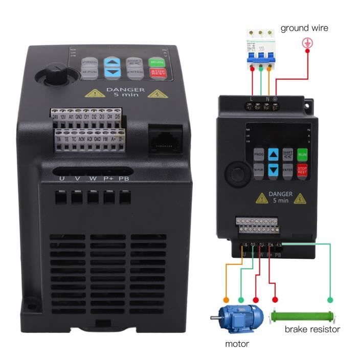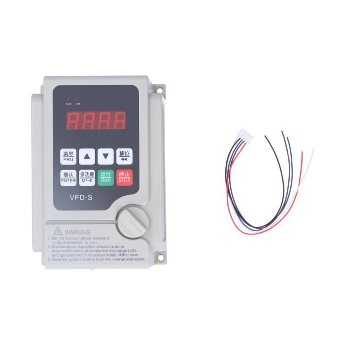 Plage de réglage de la vitesse : 1:100 (SVC) Fréquence porteuse : 1 kHz - 15,0 kHz. 【SAFE OPERATION】 : L'onduleur a une conception anti-tripping, qui a la capacité de s'adapter à un système d'alimentation pauvre, à la température et à la poussière, et il est sûr dans son fonctionnement. Source de référence de fréquence : clavier, entrée analogique, HDI, communication série, vitesse à plusieurs étapes, réglage simple PLC et PID. YIC Variateur de fréquence VFD 3 Phase AC380V Entrée AC0-380V Sortie VEVOR VFD 4KW offre un fonctionnement silencieux, un affichage numérique intelligent et de multiples protections pour le contrôle de la vitesse du moteur CNC avec une entrée monophasée ou triphasée et une sortie triphasée. 【HIGH PERFORMANCE】 : L'inverseur de moteur a une torsion élevée, une grande précision et un large contrôle de la vitesse, ce qui est stable et fiable en termes de performance. 【LARGE APPLICATION】 : Moteur de broche. Remarque : l'article n'est pas adapté pour un moteur capacitif (moteur monophasé) et sans fonction de freinage. La combinaison de plusieurs modes et le basculement entre différents modes peuvent être réalisés. Puissance : 2,2 kW, Puissance : 3 HP, Tension d'entrée : monophasé ou triphasé 220 V -15 % 50 Hz / 60 Hz. ROM Variateur De Fru00e9quence Triphasu00e9... 【Bonne STABILITE】 : Filtre intégré et mode de contrôle V/F, avec mode de régulation de la tension de sortie par contrôle PWM, bonne stabilité de l'alimentation. 【Bonne STABILITE】 : Filtre intégré et mode de contrôle V/F, avec mode de régulation de la tension de sortie par contrôle PWM, bonne stabilité de l'alimentation. PLC simple, fonction de contrôle de la vitesse en plusieurs étapes : 16 vitesses peuvent être réglées. Tension d'entrée : 220V(+/-15%) ; Tension de sortie : 220VAC ; Fréquence d'entrée : 50/60 Hz ; Fréquence de sortie : 0-400 Hz. DEX Variateur de fréquence Convertisseur VFD 3 Phase 2.2KW 380V 5A... Fonction de contrôle PID. 【HIGH PERFORMANCE】 : L'inverseur de moteur a une torsion élevée, une grande précision et un large contrôle de la vitesse, ce qui est stable et fiable en termes de performance. Courant de sortie : 10 A. Puissance de sortie : 4,0 KVA. Caractéristiques : Mode de contrôle : V/F, contrôle vectoriel sans capteur (SVC), contrôle du couple. Routeur CNC, machine CNC, fraiseuse, perceuse, machine à ailes, mélangeur, extrudeuse, refendeuse, bobineuse, compresseur, ventilateur, pompe, meuleuse, convoyeur, ascenseur, centrifugeuse et autres machines de contrôle de la vitesse. Variateur De Fréquence 3 Phases Convertisseur De Fréquence Moteur 5.5KW Variateur De Vitesse Pour Moteur 220v