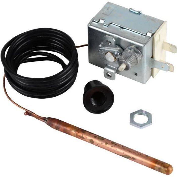 En cas de doute, ne prenez pas le risque d'une mauvaise installation : Demandez conseil auprès d'une personne qualifié, d'un électricien . Aquastats de régulation pour les installations hydrauliques et thermiques | Produits Description générale Ce produit est conçu spécifiquement pour les appareils NESTOR MARTIN. Il est essentiel de faire appel à un professionnel pour son installation en raison de la nature technique de l'appareil. Spécifications techniques Du corps b : 16A/250V Capillaire : 2.0 Bulbe (L x ) : 6.5 x 73 Contact inverseur : 1 Connexion : Parallèle à l'axe de réglage Différentiel : 5... Aquastat De Régulation à Bulbe - IMIT Type TR 2… - Bricolage Sécurité électrique: Pour votre sécurité, ce thermostat Nestor Martin est conçu pour être installé par un professionnel qualifié, garantissant une utilisation sécurisée et conforme aux normes électriques Achetez ce produit, Aquastat régulation à bulbe type IMIT TR2 ( 485019) chez , spécialiste du CVC et de la pièce détachée (chauffage et climatisati... _du_corps_b_:16A/250V, capillaire:2., 0, bulbe__x_lg:6., 5x73, contact_inv:1, connexion:Parrallèle à l¿axe de réglage, diff_rentiel:5, r_glage_c_mini:0, r_glage_c_maxi:60Compte tenu de la nature de ce produit, il est recommandé de le faire installer par un professionnel. Différentiel de température ajustable: Avec une capacité d'ajustement de 5°C, ce thermostat offre une précision de régulation de température pour répondre aux besoins spécifiques de votre installation de chauffage Design industriel robuste: Ce thermostat rectangulaire en métal et en plastique est conçu pour un montage au panneau et résiste aux environnements industriels Aquastat régulation à bulbe type IMIT TR2 - DIFF - Bouton + enjoliveur - Livraison rapide 24-48h