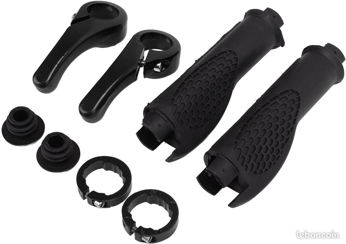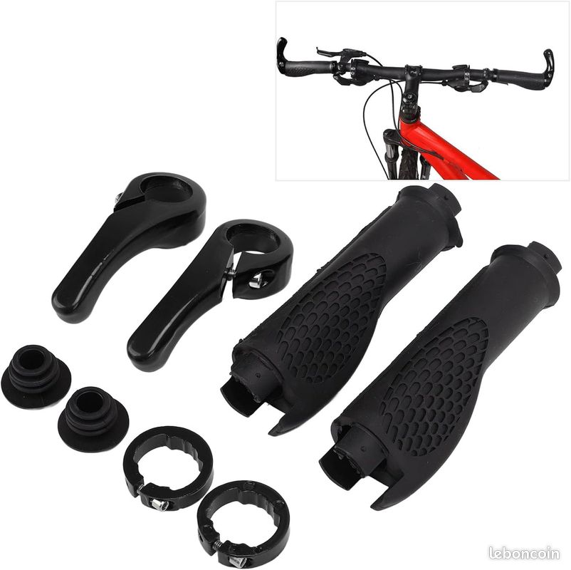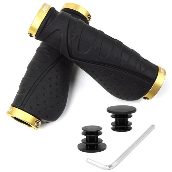 Les doubles anneaux de verrouillage en alliage d'aluminium garantissent que les poignées en caoutchouc restent bien en place, empêchant le glissement et améliorant l'absorption des chocs pour une conduite stable et fluide Poignées De Guidon De Vélo Ergonomique VTT TRAHOO - Anti-dérapant Ces poignées mesurent 133 mm de long et ont un diamètre de 33 mm, ce qui les rend adaptées à la plupart des tailles de mains. Fabriquées à partir de caoutchouc TPR de qualité supérieure et d'alliage d'aluminium, ces poignées offrent une surface antidérapante qui reste collante même par temps humide. Poignées VTT Ergonomiques Antidérapantes - Double Compatibilité universelle : conçu pour les guidons de 21 mm de diamètre, ces guidons de vélo en caoutchouc sont parfaits pour les VTT, les vélos BMX, les scooters, les vélos hybrides et les vélos pliants. La construction absorbant les chocs réduit la fatigue de la main et l'engourdissement du poignet causés par les vibrations lors de longs trajets 21 vendus 5. Poignées de guidon de vélo allongées, souples et antidérapantes, couverture de guidon en caoutchouc pour Scooter BMX vtt de 22.2mm. Liens... Ils sont également parfaits pour les vélos électriques et les accessoires de soutien tels que les rétroviseurs ou les extrémités de barre. Vous bénéficierez d'une forte résistance antidérapante, assurant sécurité et contrôle à chaque sortie, que vous soyez sur des sentiers accidentés ou des chemins lisses. Durable et polyvalent : avec une longueur de 133 mm et un diamètre de 32 mm, ces poignées de vélo ergonomiques s'adaptent à la plupart des tailles de mains. Le double système de verrouillage offre un ajustement sûr, avec des pinces en alliage d'aluminium qui empêchent le glissement. Design ergonomique pour plus de confort : ces poignées de guidon de vélo disposent d'un design ergonomique avec des surfaces plus larges et rembourrées pour un soutien de la paume. Améliorez vos trajets avec ces poignées de guidon polyvalentes, durables et confortables, conçues pour les randonnées, les sentiers et les trajets quotidiens. Grip antidérapant de qualité supérieure : fabriqué à partir de caoutchouc TPR de haute qualité, ces poignées antidérapantes offrent une surface texturée et collante qui assure une tenue ferme même par temps humide. Leur forte résistance antidérapante améliore le contrôle et la sécurité, de sorte que vous pouvez rouler en toute confiance dans toutes les conditions