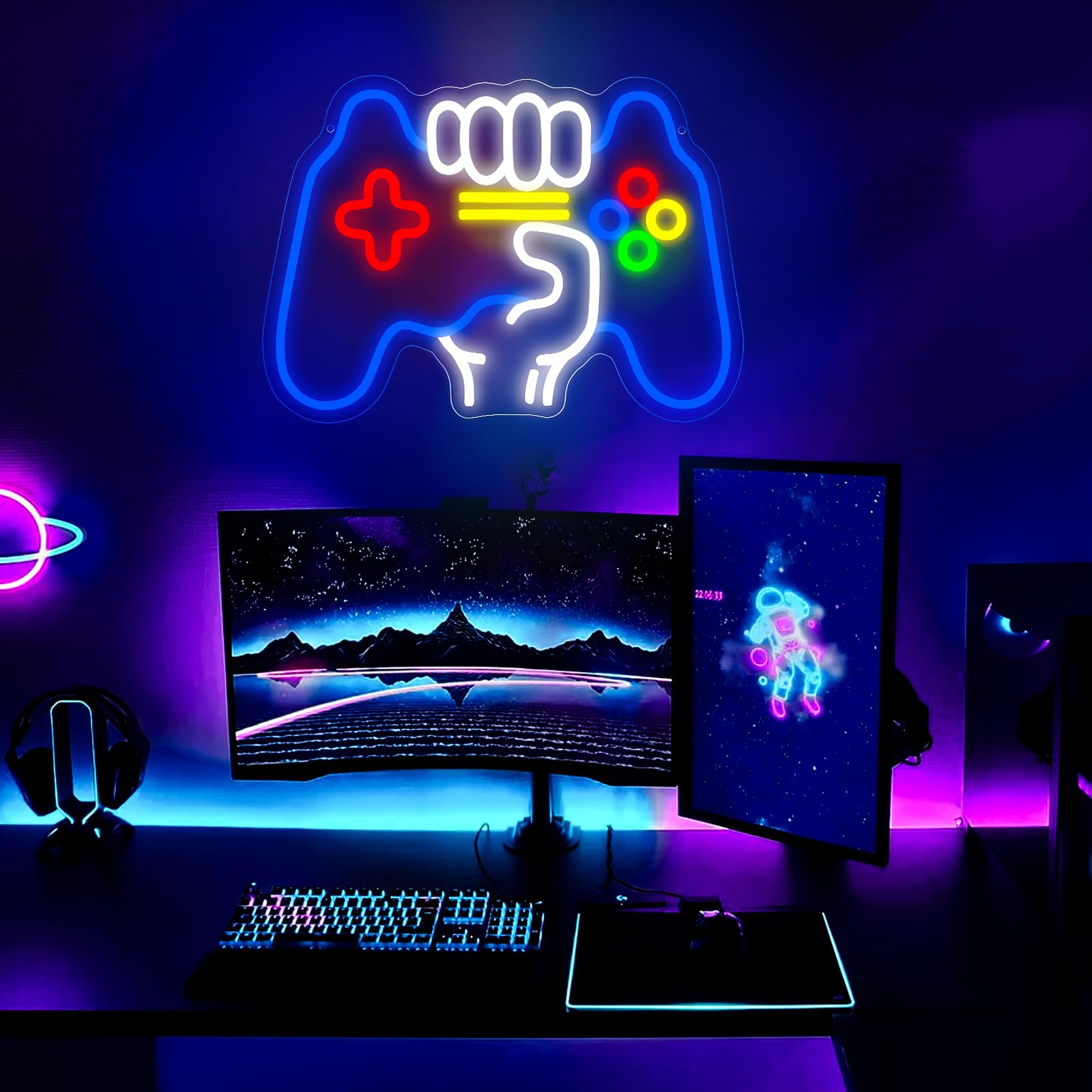 Alimentation : entrée : 100-240 V 50/60 Hz, sortie : 5 V-1 A. Conçue pour les adolescents, cette enseigne au néon sert à la fois de source de lumière fonctionnelle et de décor tendance, parfaite pour personnaliser une... (Remarque : l'adaptateur d'alimentation n'est pas inclus). Kavaas Panneau Néon Pour Manette De Jeu Pour Décoration De Salle Alimenté par un cordon USB (1,8 m), il suffit de le brancher dans un adaptateur mural ou un port USB de banque d'alimentation pour l'allumer pour une ambiance magique. Haute qualité et sans danger. Fabriqué à partir de néon flex de haute qualité, il est silencieux et ne chauffe pas au toucher, très sûr même pour être près des enfants. Chaque panneau LED est fabriqué à la main par des artisans qualifiés et conçu pour durer au moins 50 000 heures. Il constitue le complément parfait à votre décoration de jeu et apporte une touche de couleur cool qui rendra certainement vos amis de jeu envieux. C'est également un cadeau idéal pour un anniversaire, Noël et d'autres occasions – Excellent cadeau pour les joueurs et les amateurs de technologie. La touche personnelle du concept de jeu en fait un cadeau parfait qui plaira même aux adolescents les plus capricieux. Lumoonosity Panneau néon Game On – Panneau LED pour salle de jeux Accrochez simplement le panneau néon Gamer sur un mur et branchez-le – vous êtes prêt à jouer avec les vibrations magiques de la lueur. Alimenté par un cordon USB (1,8 m), chaque panneau LED pour joueur est fabriqué à la main et conçu pour durer au moins 50 000 heures (adaptateur d'alimentation non inclus). Conception durable et durable: Cette lampe au néon LED Kavaas est construite avec un corps en plastique robuste et a une durée de vie de 5000 heures, en veillant à ce qu'il reste un ajout dynamique et fiable à toute salle de jeu pour les années à venir. Personnalisable et polyvalent: Avec une longueur de coupe de 10m, ce néon peut être facilement coupé pour s'adapter à n'importe quel... Améliorez la salle de jeu au niveau supérieur : faites de votre cave de jeu le centre de divertissement le plus épique avec ce superbe panneau néon pour manette de jeu qui transforme instantanément votre espace et rayonne de joie. Prêt à l'emploi : monté sur un panneau arrière transparent de haute qualité avec des trous pré-percés, il est super facile à installer et à déplacer. Superbe décoration de jeu et cadeau : ajoutez le panneau de jeu néon comme décoration parfaite pour correspondre à vos consoles de jeux vidéo et montrer votre style de joueur hardcore. 【Satisfaction garantie】Kavaas promet à chaque client une expérience d'achat heureuse avec nous.