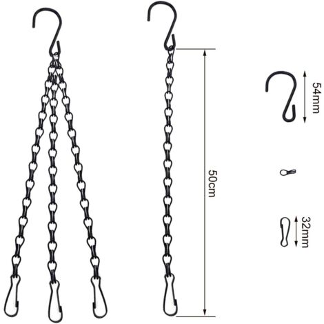 Motifs fabriqués : Vous pouvez essayer de brosser la chaîne de suspension avec du vernis à ongles ou un revêtement pour transformer sa couleur d'origine dans l'autre couleur que vous aimez. BNGGOGO Lot de 4 chaînes de panier suspendu, 89 cm Chaînes de suspension de qualité : ces chaînes rétro en fer sont fabriquées en fer durable avec une performance et une résistance aux intempéries, ce qui est robuste et ne rouille pas facilement, rétro, adaptées pour une utilisation en intérieur et en extérieur. Markeny Lot De 4 Chaînes Décoratives Réglables De 40 Cm à Suspendre - Support à 3 Points - Peinture Antirouille - Chaîne Noire Pour Suspendre Des Plantes, Des Carillons éoliens, Des Panneaux Caractéristiques : le colis comprend 4 chaînes de suspension, la longueur réglable est jusqu'à 88,9 cm selon vos besoins, capable de supporter jusqu'à 9 kg, outils utiles pour accrocher quelque chose, crochets de plantes Matériau de Haute Qualité]La chaîne de pot de fleurs est en fer de haute qualité et la surface métallique est galvanisée, ce qui est durable et difficile à rouiller et à déformer.[Taille Appropriée]Un ensemble de chaînes suspendues se compose de trois longues chaînes et de 4 crochets en forme de S. La longueur de la chaîne... Outils pratiques : la chaîne de suspension résistante aux intempéries est couramment utilisée pour les clips de pot de fleurs, les mangeoires à oiseaux, les paniers de plantes, les nichoirs à oiseaux, les pots de fleurs, les lanternes, les carillons, les panneaux d'affichage, les tableaux noirs et d'autres luminaires à suspendre et à monter. Longueur réglable : vous pouvez raccourcir ou étendre la chaîne pour correspondre à vos mangeoires à différentes hauteurs. Utilisations multiples : Utilisé pour accrocher des mangeoires à oiseaux, des paniers de plantes, des nichoirs à oiseaux, des pots de fleurs, des paniers de suif, des lanternes, des carillons, des ornements, et plus encore.