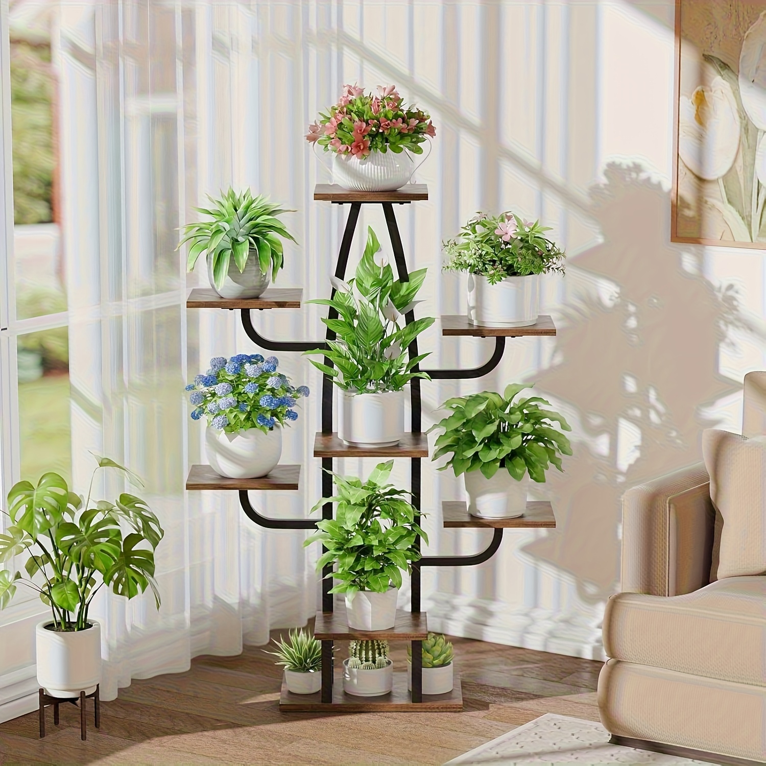Dimensions (L x l x H) : 60 x 34 x 132,8 cm Super robuste et durable, l'étagère à suspendre à 2 niveaux combine un bois de pin et un cadre en fer peint qui apporte la résistance de 2 matériaux à un jeu complet, résistant à la chaleur et à l'humidité, sans rétrécissement, pas de déformation et de fissure. Espacement Large & Multi-Niveaux]Cette étagère à plantes à 6 niveaux comprend 4 grandes tablettes métalliques en treillis, 8 petites tablettes métalliques en... Etagere Fleur Interieur Lot De 2 Grand Porte Plante Intérieur En Fer Forgé Étagère Avec Lampe De Culture Plantes Support Pot De Fleurs En Métal Pour Balcon Salon 112x28x172CM Support Pour Plantes D'intérieur Support De Plante En Métal à 8 Niveaux, Étagère à Fleurs D Avec Lampes De Culture Presentoir De Pots De Fleurs Decoratif 67 X 30 X 146 Cm 88860630 Le bois est carbonisé à haute température.