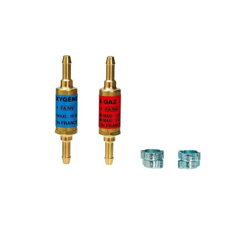 [De haute qualité et durable] Ce pare-flamme à oxygène acétylène a une structure en laiton de haute qualité, durable et résistant à la corrosion. Le clapet anti-retour pare-flamme est une protection indispensable lors de l'utilisation d'un chalumeau soudeur ou d'un chalumeau découpeur. L'anti-retour est pourvu d'un clapet très sensible qui stoppe tout retour de gaz comburant et de gaz combustible ainsi qu'un filtre en métal fritté qui étouffe la flamme et l'empêche de... Clapet anti retour hydraulique en ligne 1/2'' tarage 2b [Artisanat exquis] Répond aux exigences du processus de soudage, n'affecte pas la température de la flamme, le débit de gaz, etc. Clapet Anti Retour Oxygène Clapet Anti-retour D'oxygène Acétylène Clapet Anti-retour Clapet Anti Retour Oxygène Obligatoire Les clapets anti-retour pare-flamme sont une protection indispensable lors de l’utilisation d’un chalumeau. Ces appareils existent sous différentes versions de montage, soit sur détendeur, sur tuyau ou sur chalumeau Spécification : Type: HF - 2 Taille: M16 * 1., 5 Milieu de travail: acétylène/oxygène Pression de travail: moyenne pression (MPa) Débit nominal: 3 m3/h Diamètre du trou de travail: M14 Dimensions: M16 * 1,5 Principe d'action: Type sec Emplacement de l'appareil: type de centralisation Poids: env. [Empêcher le reflux de gaz] Le clapet anti-retour intégré peut empêcher le retour de gaz.